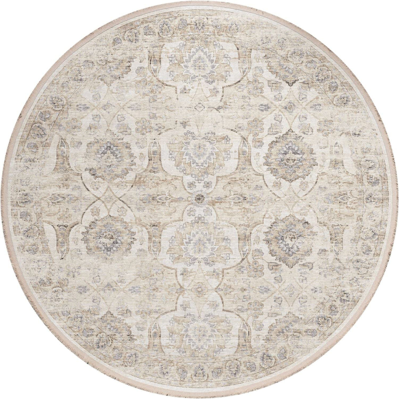 Q: What are the dimensions of the Winslow WL3 Grey Transitional Rug?A: The Winslow WL3 Grey Transitional Rug comes in a round shape with a size of 4 feet by 4 feet.