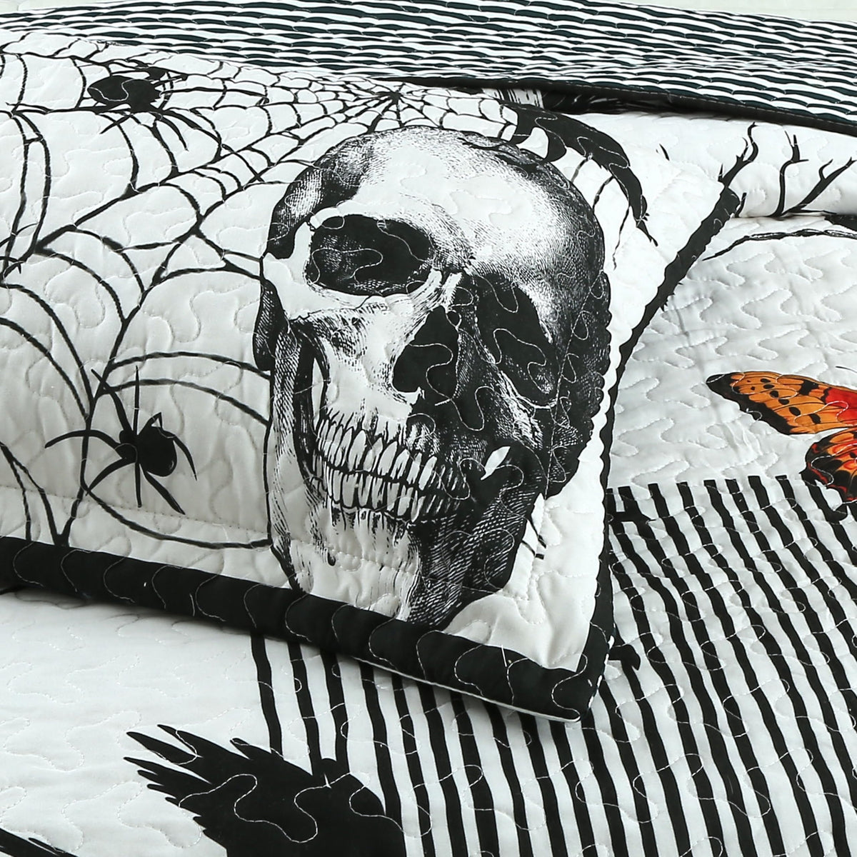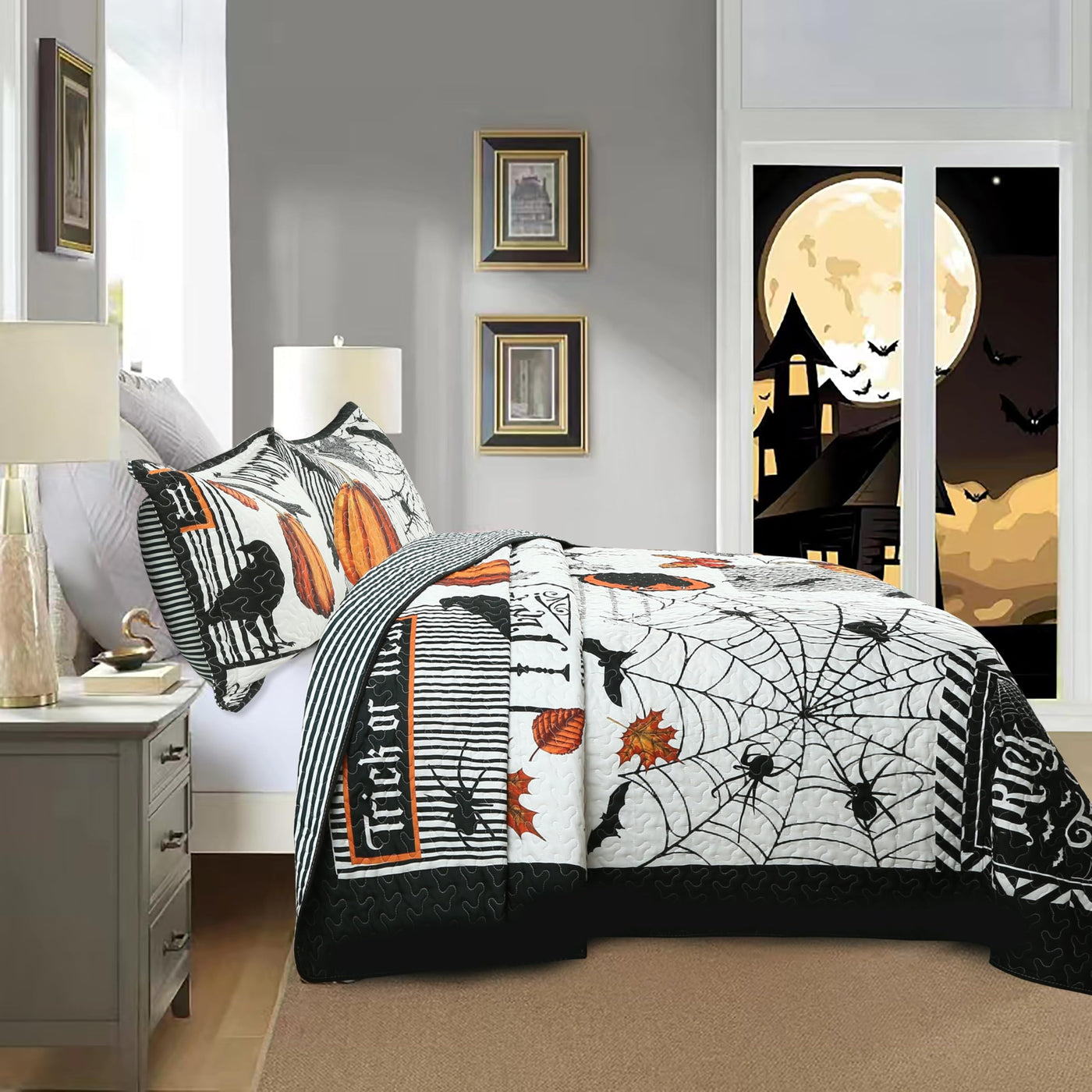 Marcielo 3 Pcs Halloween Themed Quilt Bedspread Set - Cozy And Spooky Pumpkin And Ghost Pattern Me500 (Halloween, Queen)