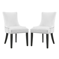 Enhance your dining experience with the exquisite Marquis Dining Chair. This chair exudes charm and elegance, boasting a luxurious button tufted design, graceful curves, and stylish antique copper nailhead trim. Crafted with utmost comfort in mind, it features dense foam padding and fine vinyl upholstery. The solid wood frame ensures durability, while the non-marking foot glides protect your floors. Perfect for the contemporary home, the Marquis Dining Chair comes in a set of two, adding a touch of sophistication to any dining space.
