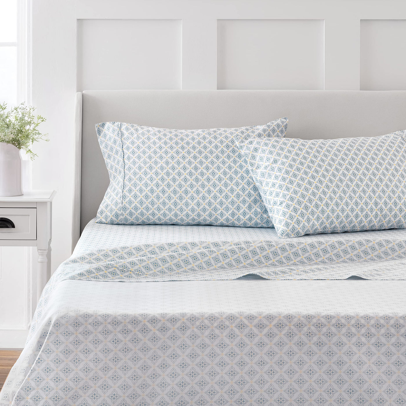 Elevate Your Home Decor With Our Beautifully Styled Sheet Sets, Available In Various Prints And Solid Dyed Colors Our Martha Stewart Sheets Collection Includes Classic White, Tranquil Light Green, Rich Navy And More Each Set Comes With A Fitted Sheet, Flat Sheet, And Pillowcases Crafted From Premium Quality Cotton For A Luxurious Sleep Experience Superior Comfort And A Complete Bedroom Makeover With Our Sheet Sets