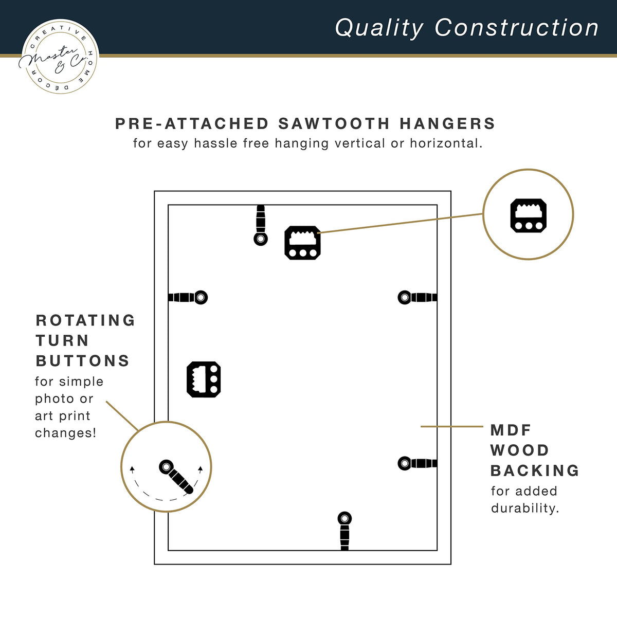 Q: Can this frame be hung vertically and horizontally?A: Absolutely! The frame comes with pre-attached saw tooth hangers that allow for easy vertical or horizontal wall hanging, making it versatile for any wall space.