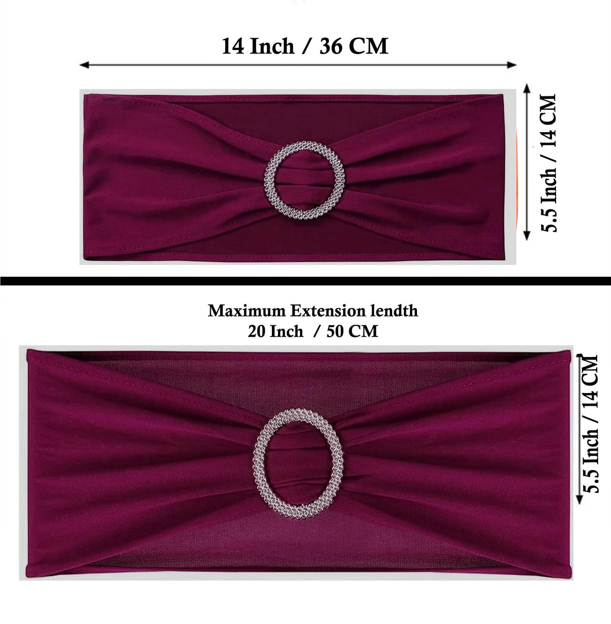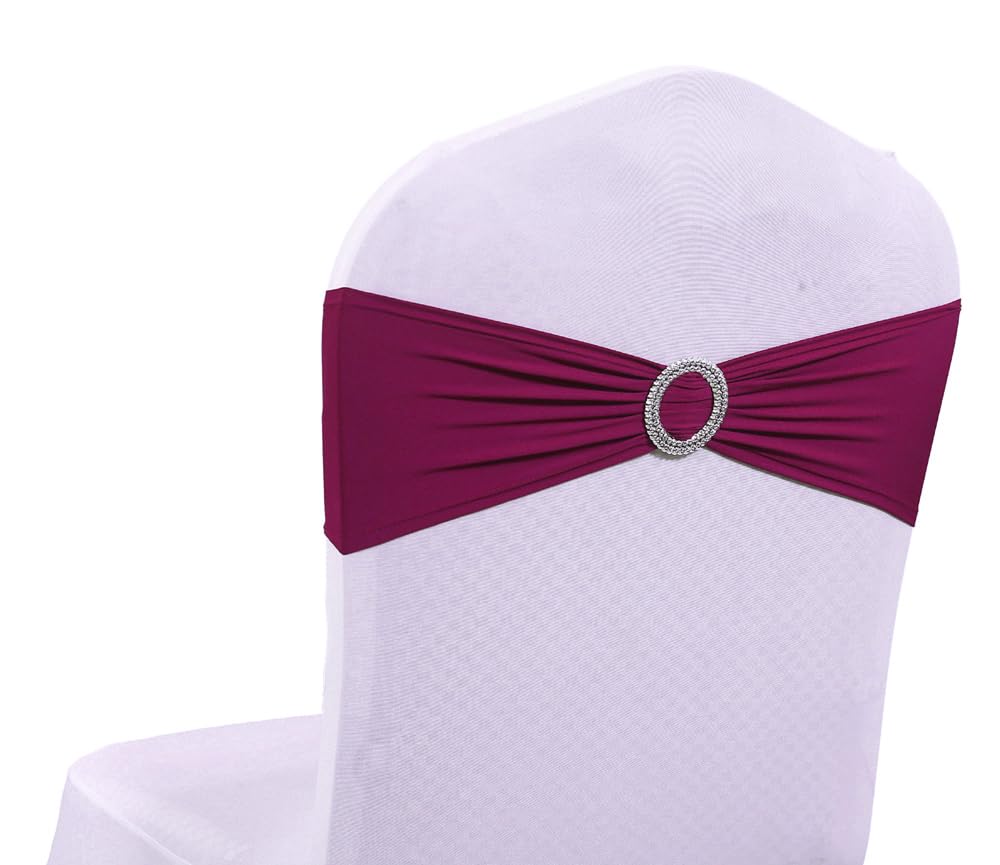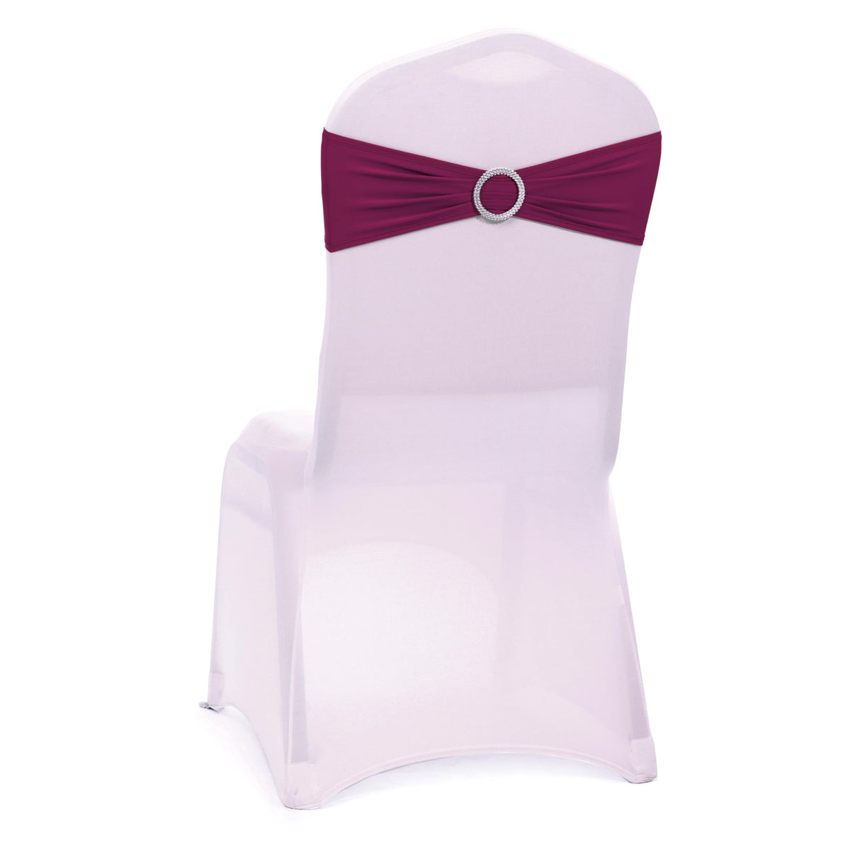 Mds Pack Of 10 Spandex Chair Sashes Bow Sash Elastic Chair Bands Ties With Buckle For Wedding And Events Decoration Spandex Slider Sashes Bow - Eggplant