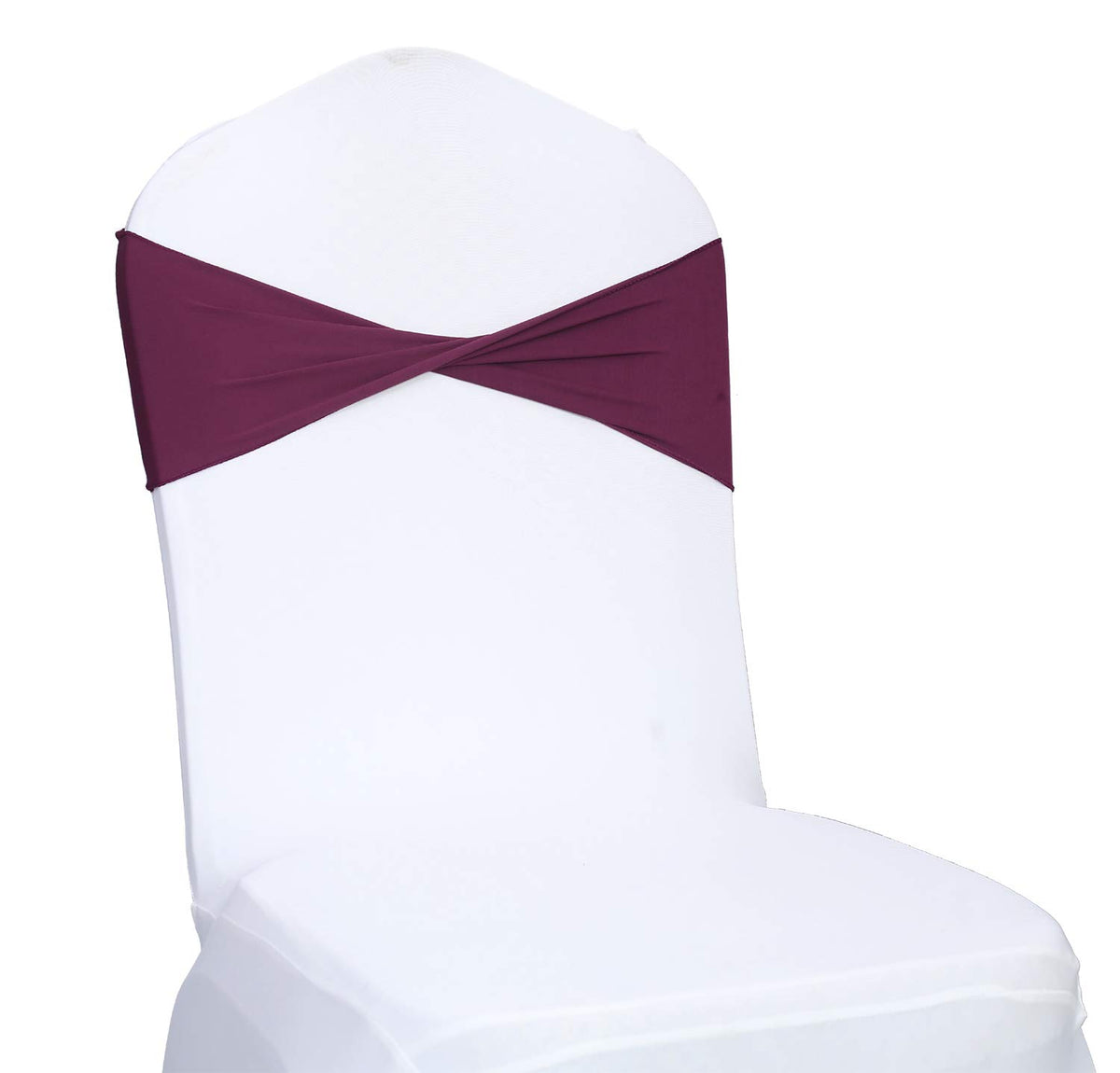 Mds Pack Of 10 Spandex Chair Sashes Bow Sash Elastic Chair Bands Ties Without Buckle For Wedding And Events Decoration Spandex Slider Sashes Bow - Eggplant