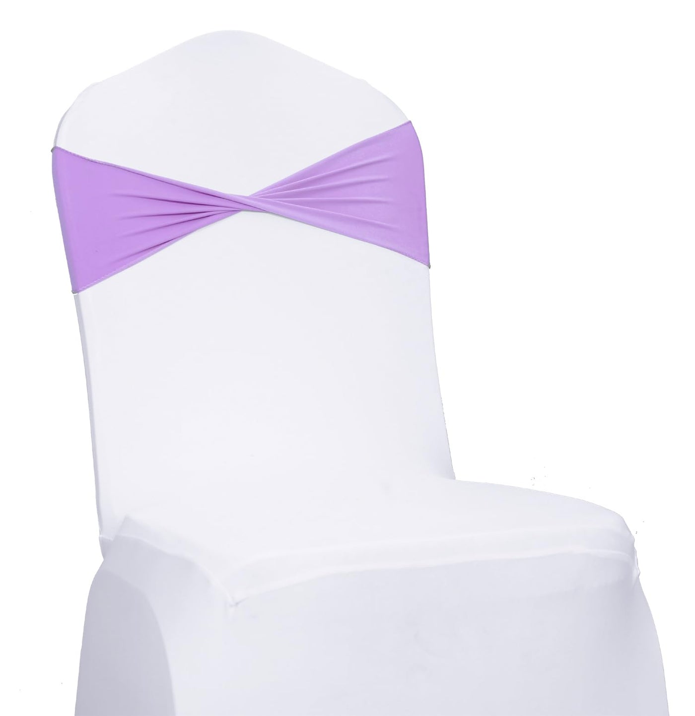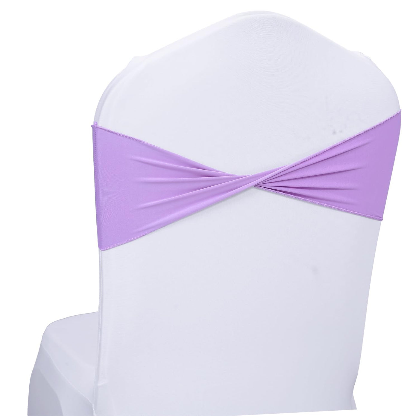 Mds Pack Of 10 Spandex Chair Sashes Bow Sash Elastic Chair Bands Ties Without Buckle For Wedding And Events Decoration Spandex Slider Sashes Bow - Lavender
