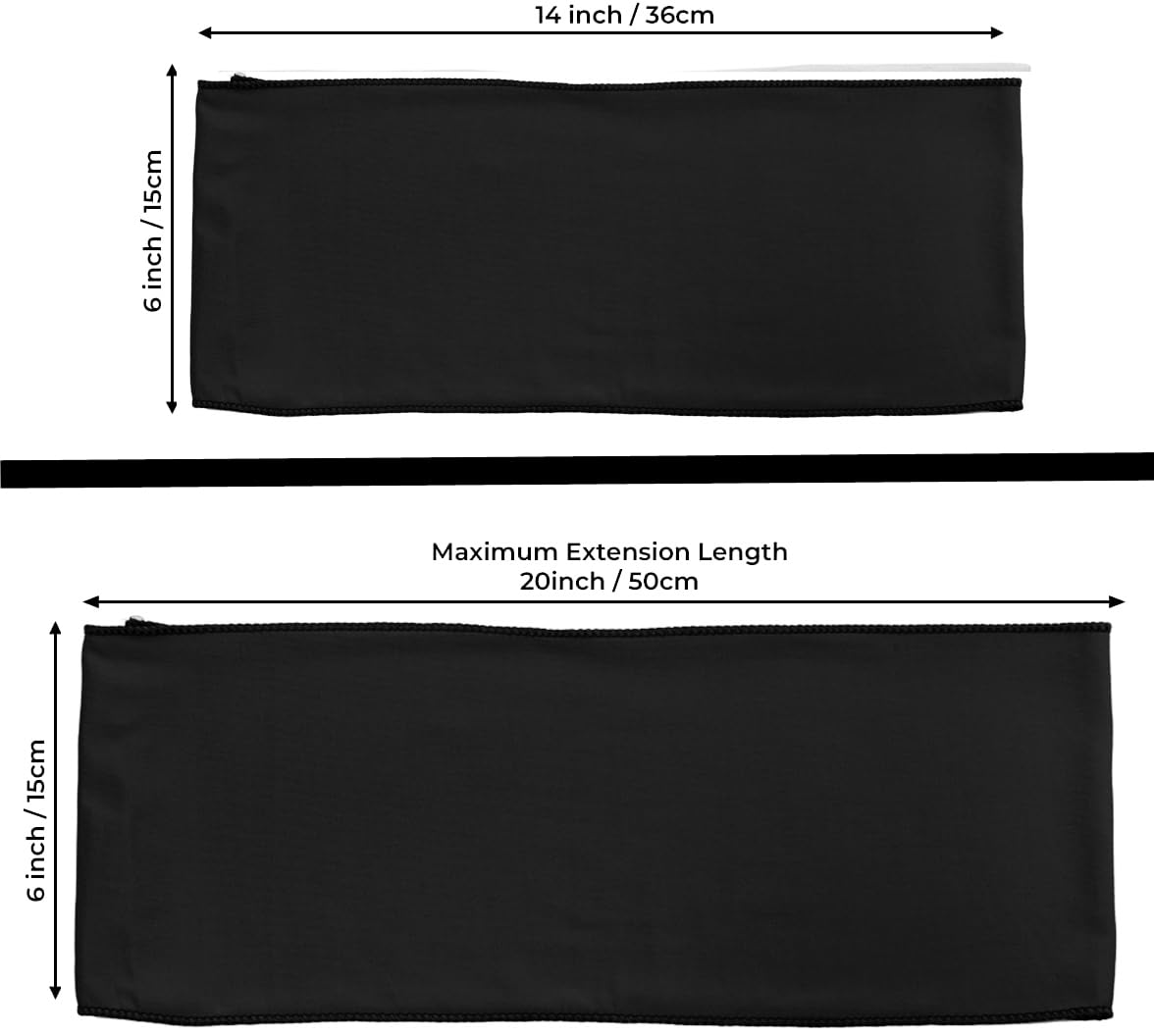 Size Size: 5.9' X 14' Or 14Cm(W)*35Cm(L).This Spandex Bow Fit 35-50Cm Chair Back Width.