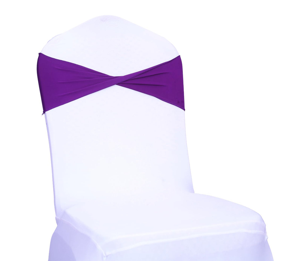 Mds Pack Of 100 Spandex Chair Sashes Bow Sash Elastic Chair Bands Ties Without Buckle For Wedding And Events Decoration Spandex Slider Sashes Bow - Cadbury Purple