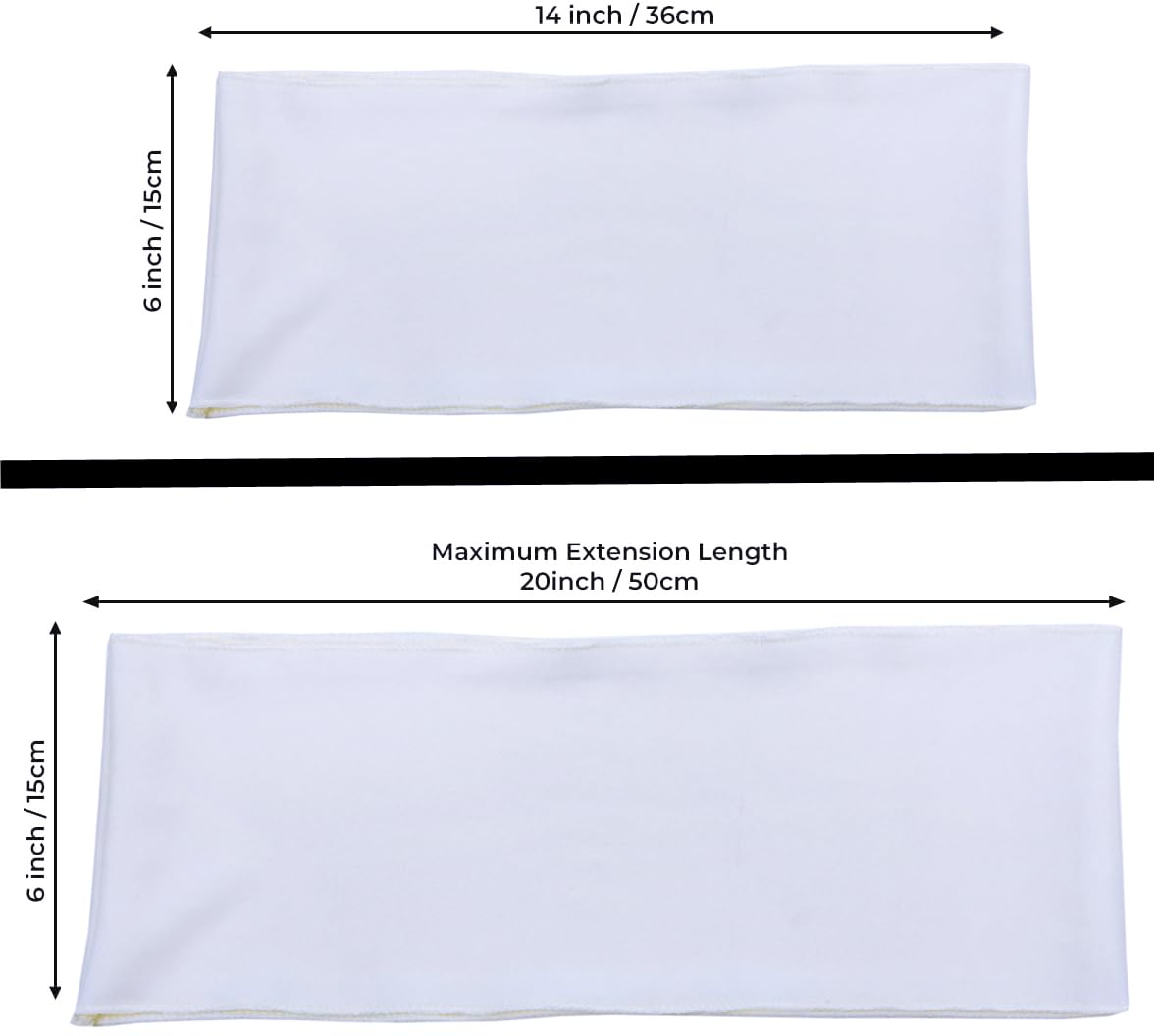 Size Size: 5.9' X 14' Or 14Cm(W)*35Cm(L).This Spandex Bow Fit 35-50Cm Chair Back Width.