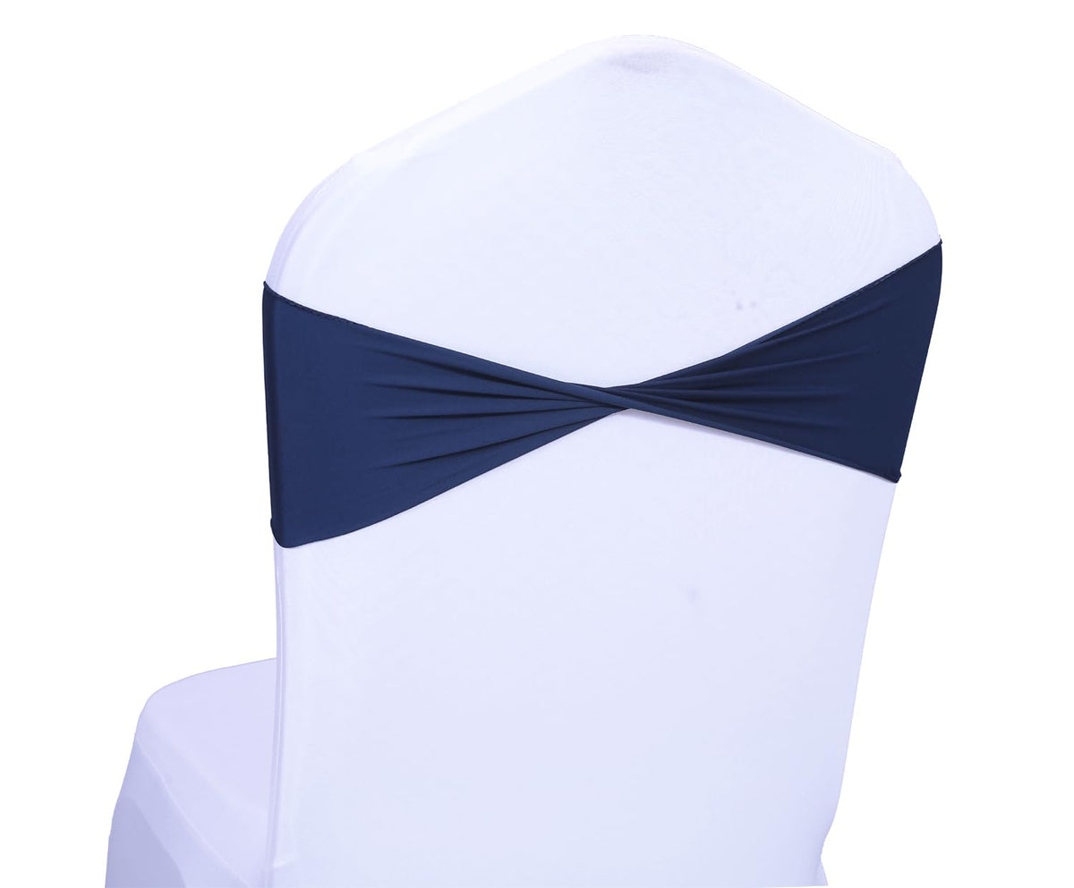 Mds Pack Of 150 Spandex Chair Sashes Bow Sash Elastic Chair Bands Ties Without Buckle For Wedding And Events Decoration Spandex Slider Sashes Bow - Navy Blue