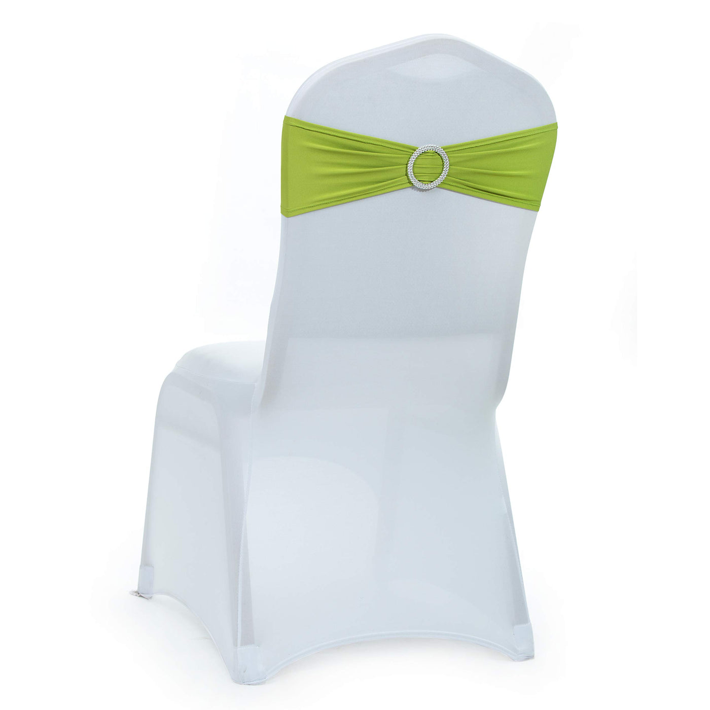 Mds Pack Of 50 Spandex Chair Sashes Bow Sash Elastic Chair Bands Ties With Buckle For Wedding And Events Decoration Spandex Slider Sashes Bow - Apple Green
