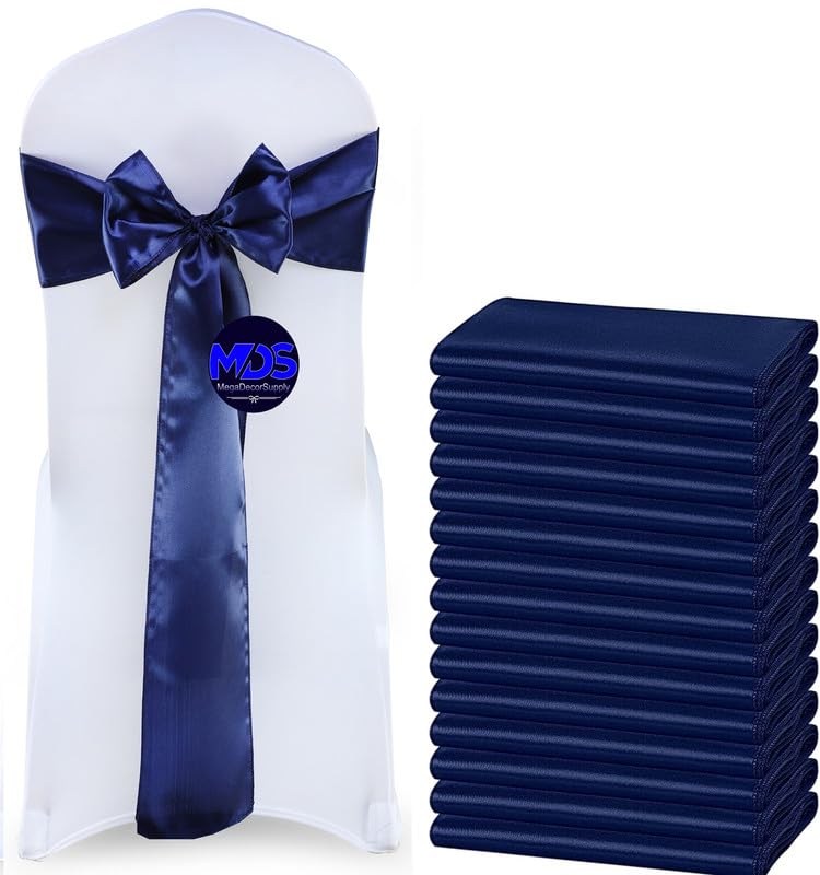 Mds Pack Of 75 Pcs Satin Chair Sashes Charmeuse Sateen Dining Chair Bows Ribbon Ties Back Sash For Wedding Party Birthday Home Hotel Restaurant Banquet Decoration (7 X 108 Inch, Navy Blue)