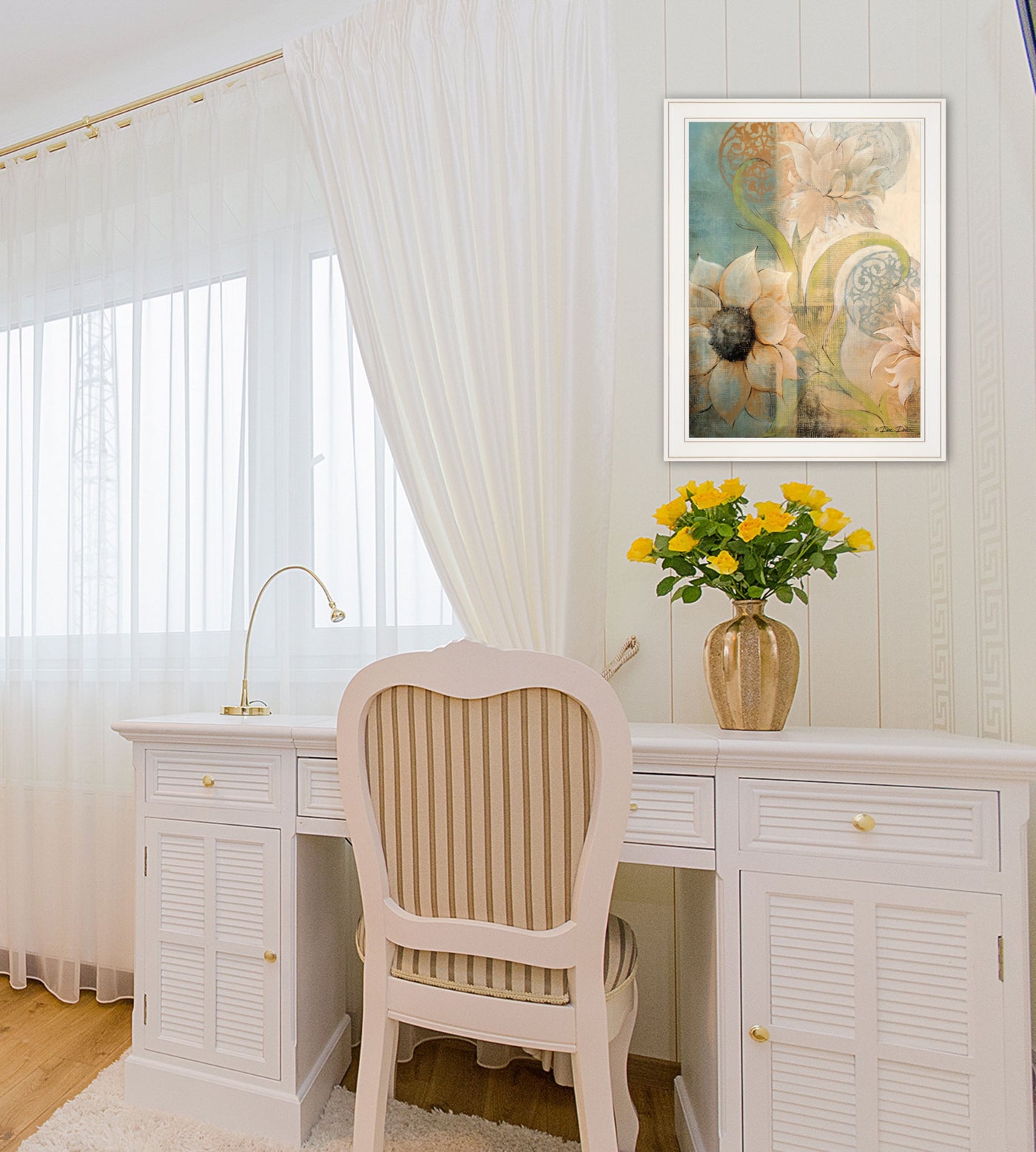 Unique and decorative, this meandering flowers i 1 white framed print wall art will leave a lasting impression. This print is a visual artistic expression that allows you to decorate your space in style. Reproduced for you on paper, this hanging accent will be a trendy and fashionable way to dress your hang on your wall to add some up to fashion date and decoration. Instantly liven up your space with this art that brings color and dimension to your walls. 27' H x 21' W x 1' D