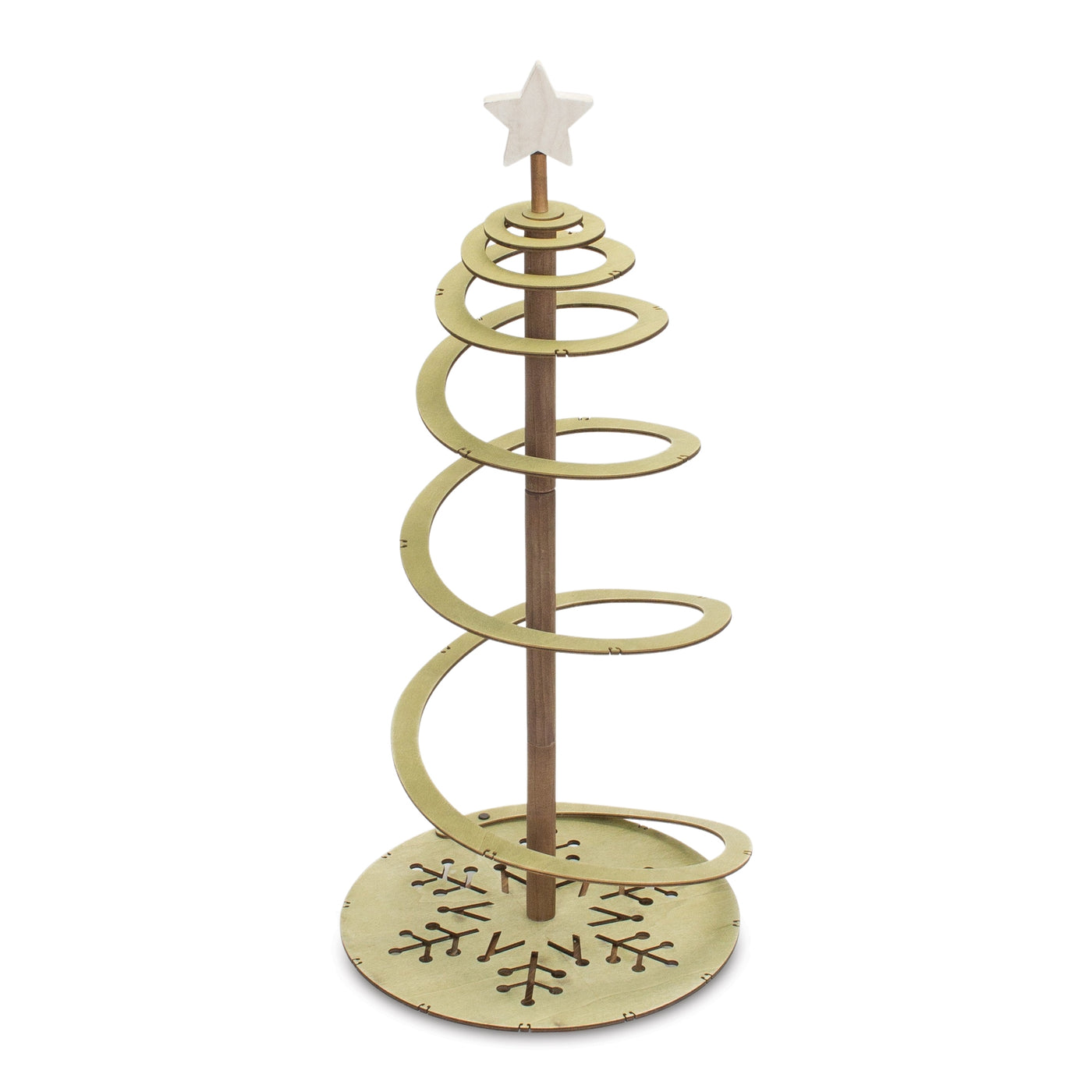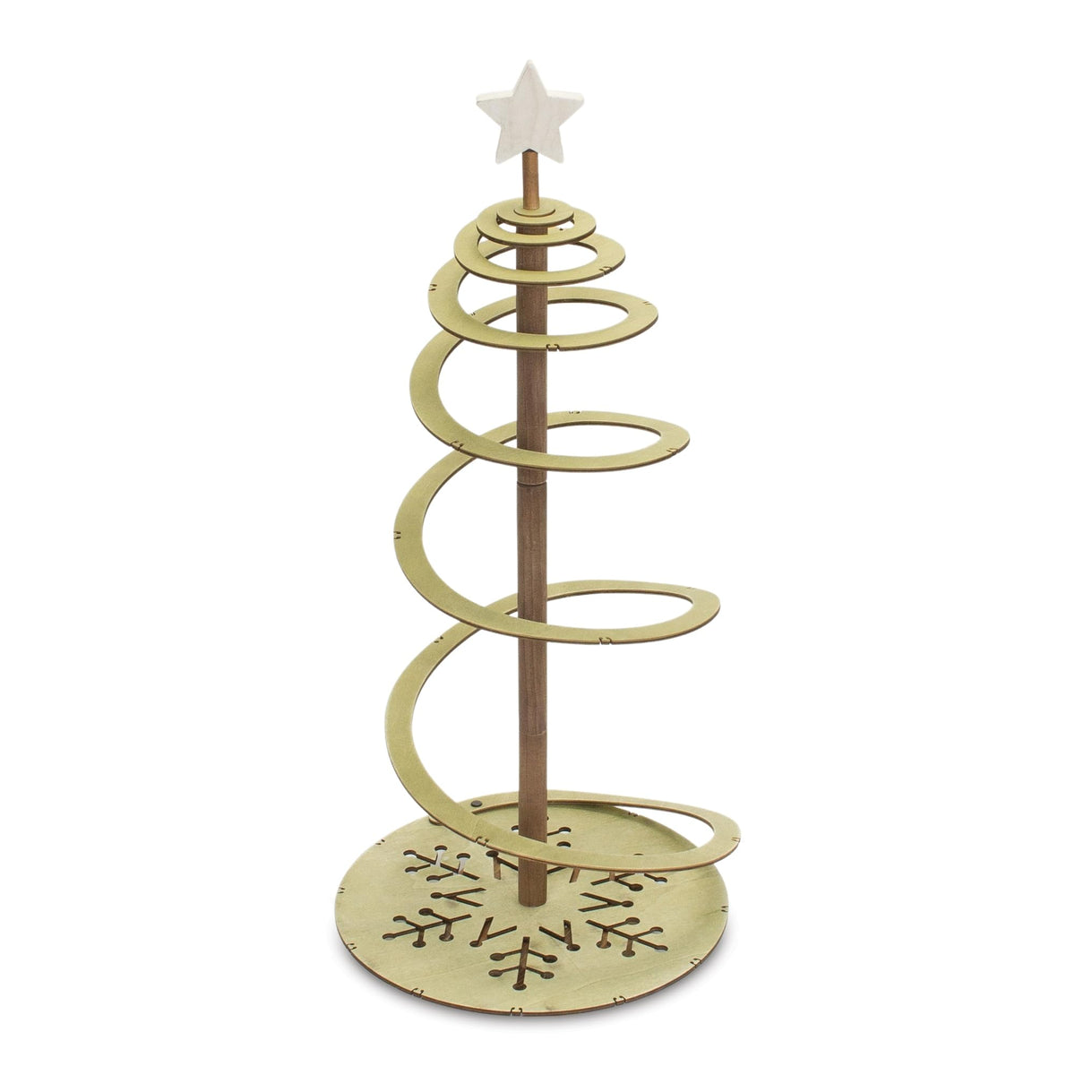 Make your holiday season truly magical with this set of Sprial Wood Trees! Our design features a wintry beige and white finish with star and snowflake accents, perfect for sprucing up any room. Whether you're looking to enhance your home's decor or add a touch of sparkle to your office, these quality wood trees are sure to make a statement. Create an enchanting atmosphere and immerse yourself in the warmth of season with our tabletop tree decor!
