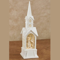 Melrose Church Snow Globe With Angel 16.25 Inches Height Plastic