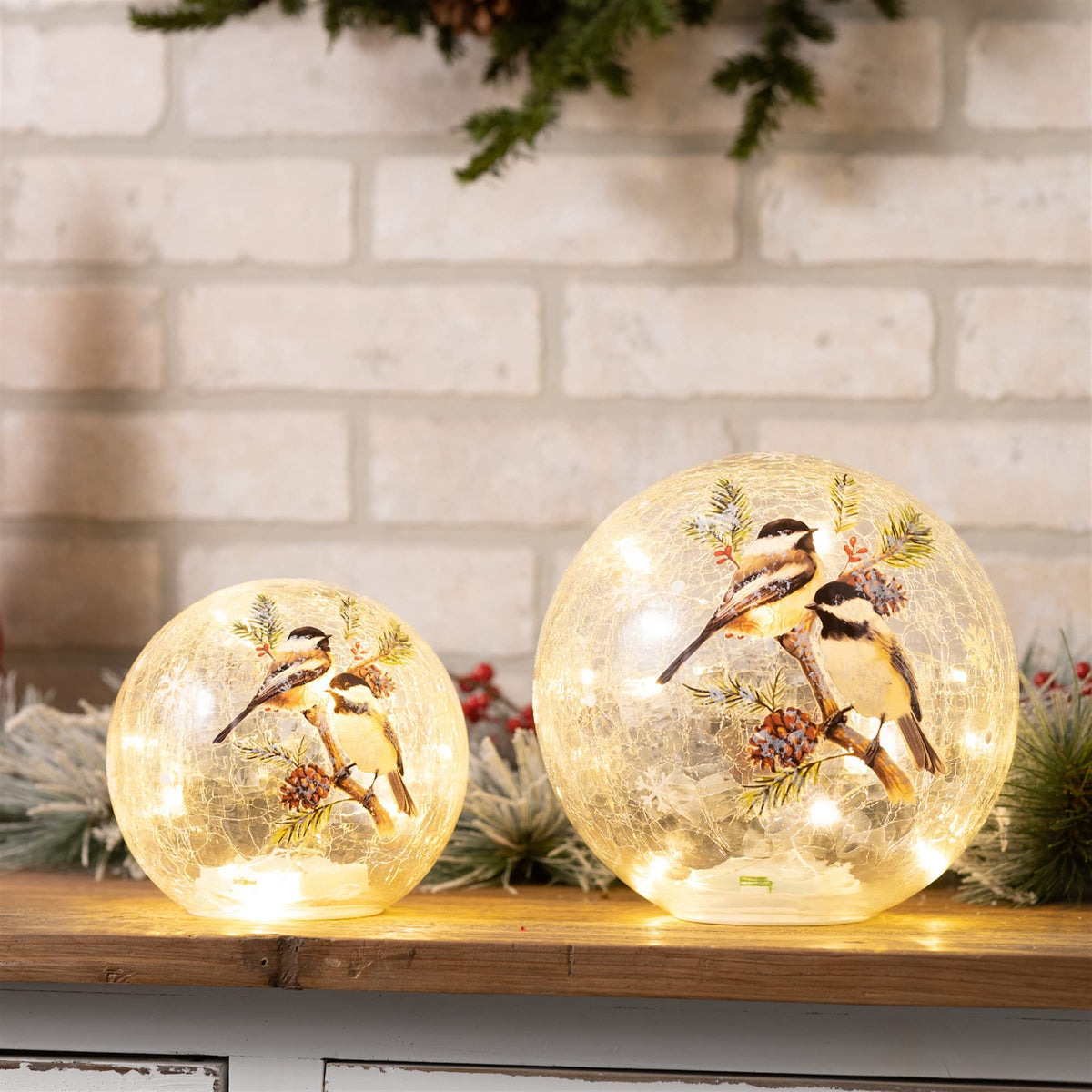Melrose Glass Led Snow Globe With Chickadees, Set Of 2, Christmas, 5.5' D, 7.5' D, 6 Hour Timer, Batteries Not Included