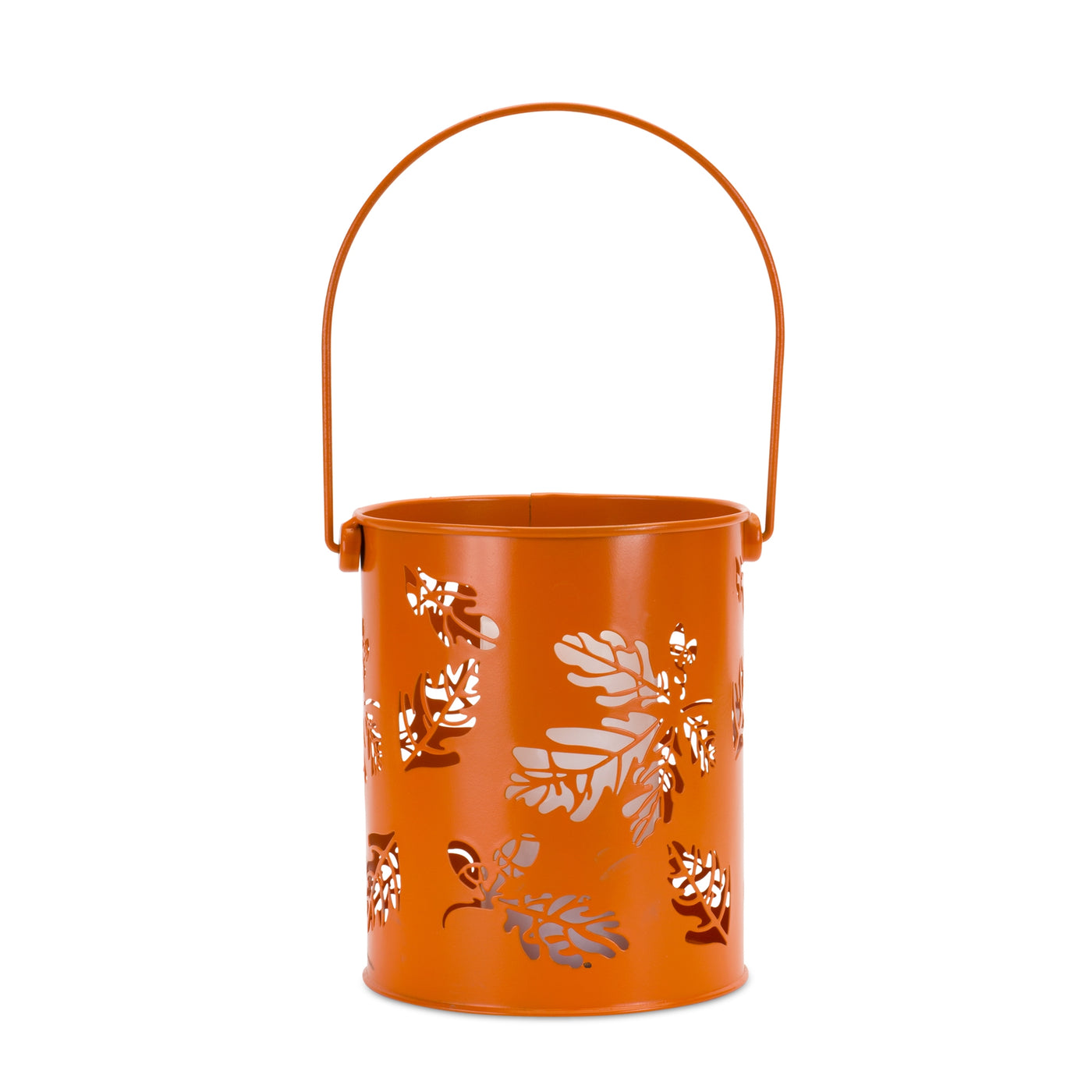 Illuminate your fall dcor with this set of Metal Leaf Candle Holders. Featuring two assorted sizes, this set is sure to fit in with any style of harvest dcor. The cut-out leaf design paired with the bright orange finish is sure to make a memorable display. The delicate handle is the perfect finishing touch. Add a real wax or LED candle to each holder to complete the look.
