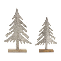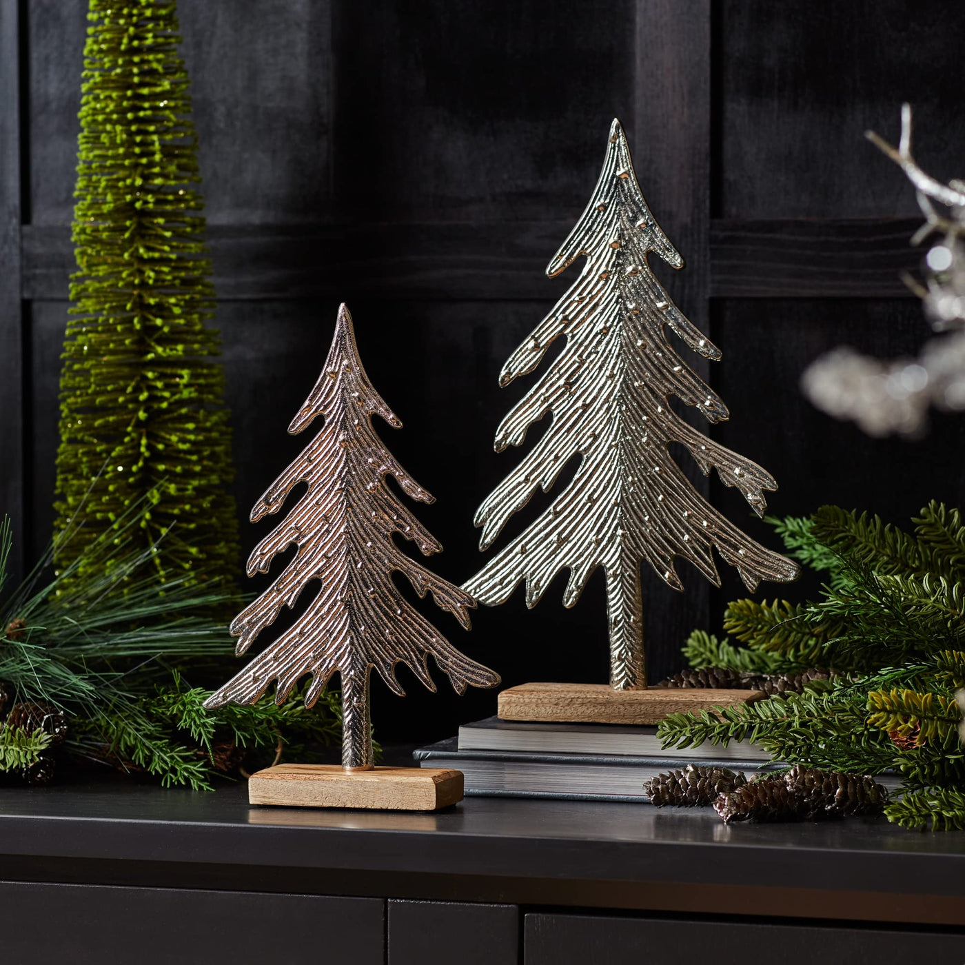 Melrose Wood And Aluminum Christmas Tree On Base, Set Of 2, Holiday Season Decoration