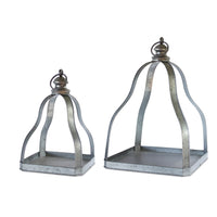 Lantern (Set of 2) 15.5''H, 20''H Metal Embellish your home with this beautiful set of Open Metal Lanterns. Featuring two assorted sizes, the galvanized metal finish paired with the farmhouse or rustic frame design is the perfect combination to create a stunning display. The sturdy metal composition is sure to last for seasons to come. Great for both every day and seasonal decor, just add a real wax or LED candle to complete the look. Measures 14 x 14 x 20 Primary Materials: Metal Reccommended for indoor and outdoor covered use only Candles sold separately