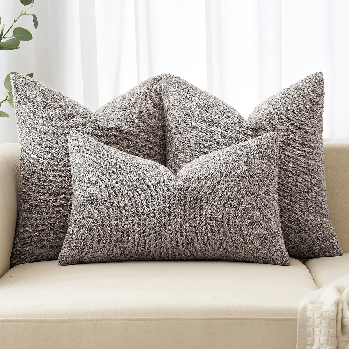 Miulee 18X18 Inch Decorative Pillow Covers For Couch Bed Set Of 2 Textured Boucle Neutral Throw Pillows Silver Grey Accent Solid Cushion Pillowcase Cozy Soft Chair Sofa Livingroom Home Decor