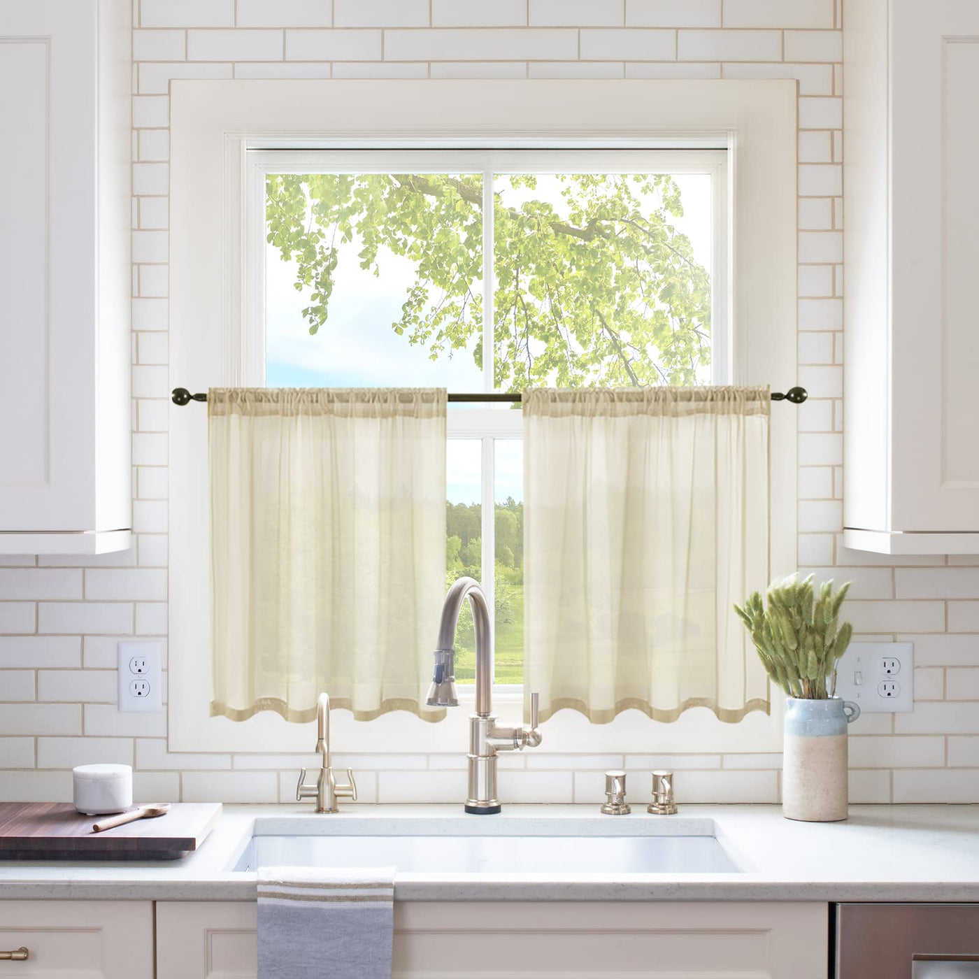 Miulee 2 Panels Kitchen Tiers Half Window Sheer Curtains Rod Pocket Translucent Voile Drapes For Kitchen Bathroom Small Windows 29 By 24 Inch Beige