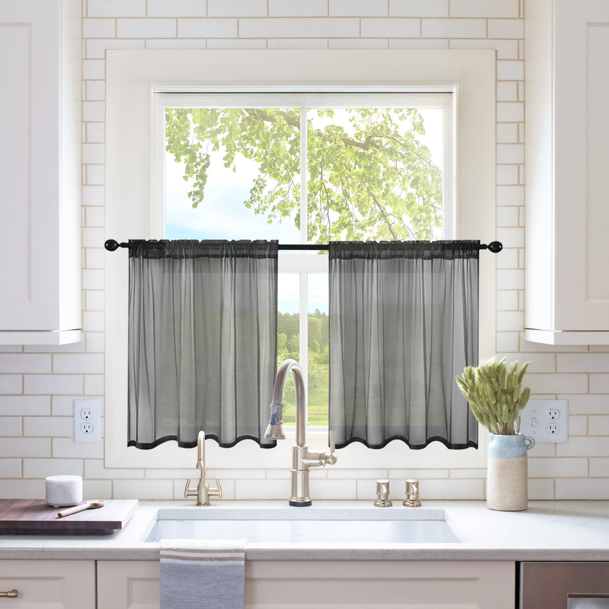 Size&Material: Package includes 2 panel tier curtains, W29xL24 per panel, W58xL24 per set(from the top edge of rod pocket to bottom sheer). Made of high quality polyester blended, soft to touch. Function: Effectively block harsh light entering room, let the natural light filtering. Semi sheer Style allow the natural light in while provide your enough privacy. They can blend in easily with your kitchen, bathroom, laundry room, cafe, living room, studio or wherever you used them. Nice Decoration: Simple but elegant, short tier curtains provide a modern look to your room. Refreshing and brightening your space in a simple way with sheer curtains. 3 inch rod pocket opening to suit most curtain rods which diameter is under 1.8 inches. Washing Instructions: Machine washable in cold water ( make sure the water temperature is lower than 86?/30? ), Tumble Dry, Do Not Iron, Do Not Bleach. Warm Tips: Due to different screen display, the color of actual item may vary slightly from images. MIULEE TOUCH YOUR LIFE.