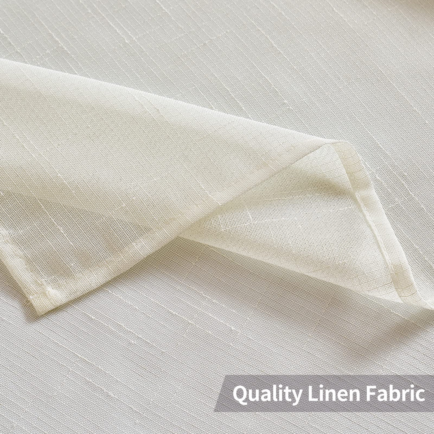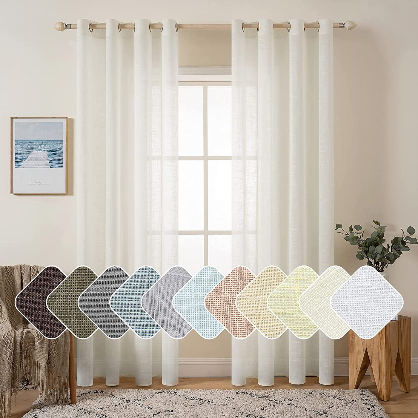 Miulee 2 Panels Natural Linen Look Textured Sheer Curtains Elegant Solid Ivory Drapes Grommet Top Window Voile Panels For Bedroo