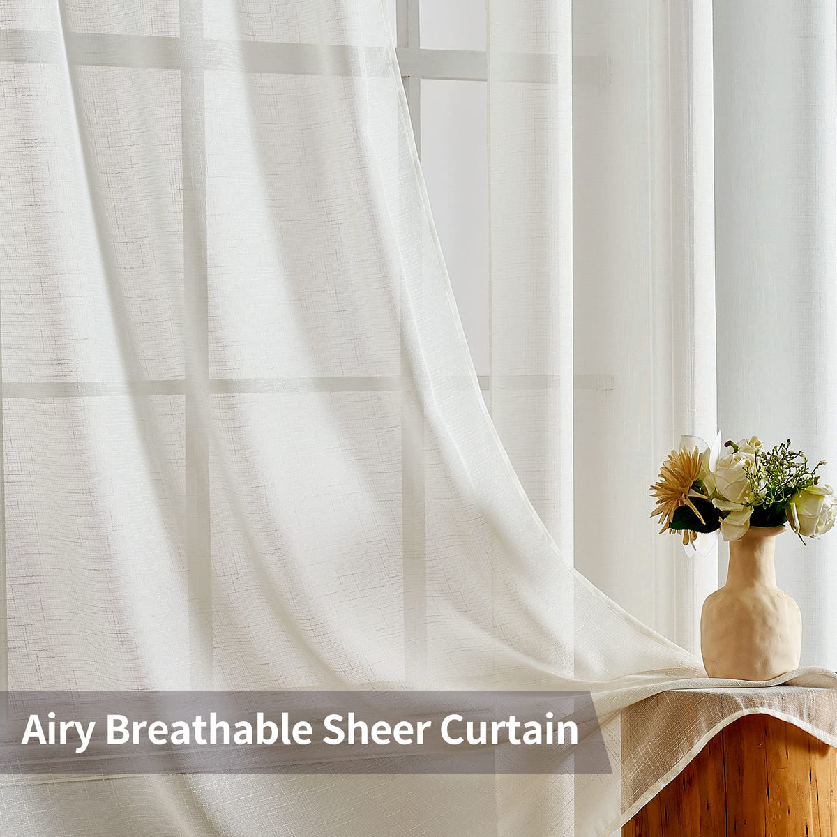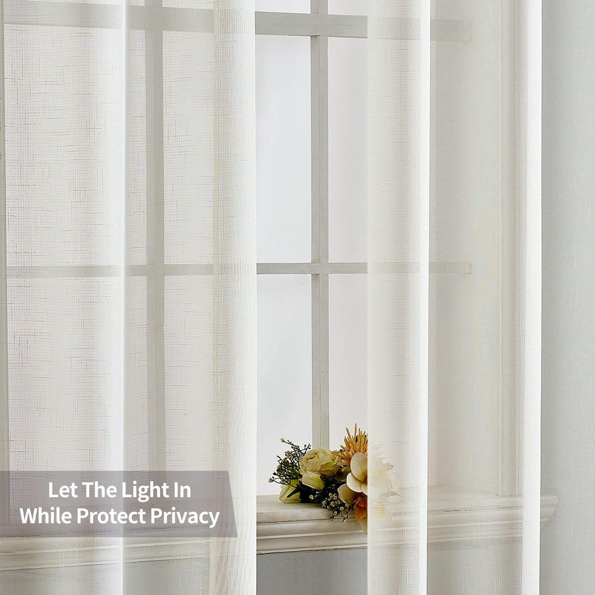 Material: These Simple But Elegant Semi Sheer Curtains Are Made By Soft And Sturdy Linen. The Style Of The Curtains Is Good For Any Room Decor. Multifunctional Curtains: These Sheers Are Perfect For Your Front Windows. The Fabric Is Very Soft And The Sheers Are Well Made. Sheer Enough For Good Air Flow, Great Light,Also Offers Privacy. In Each Room, They Let Light Through But Create A Fairly Effective Barrier From Even The Penetrating High-Noon Sun. They Look Soft And Gentle In The Sun, And They Look Warm And Gentleat Night. Easy Care: Machine Washable In Cold Water, Gentle Cycle, Tumble Dry. Cool Iron If Needed. Dot Not Bleach .