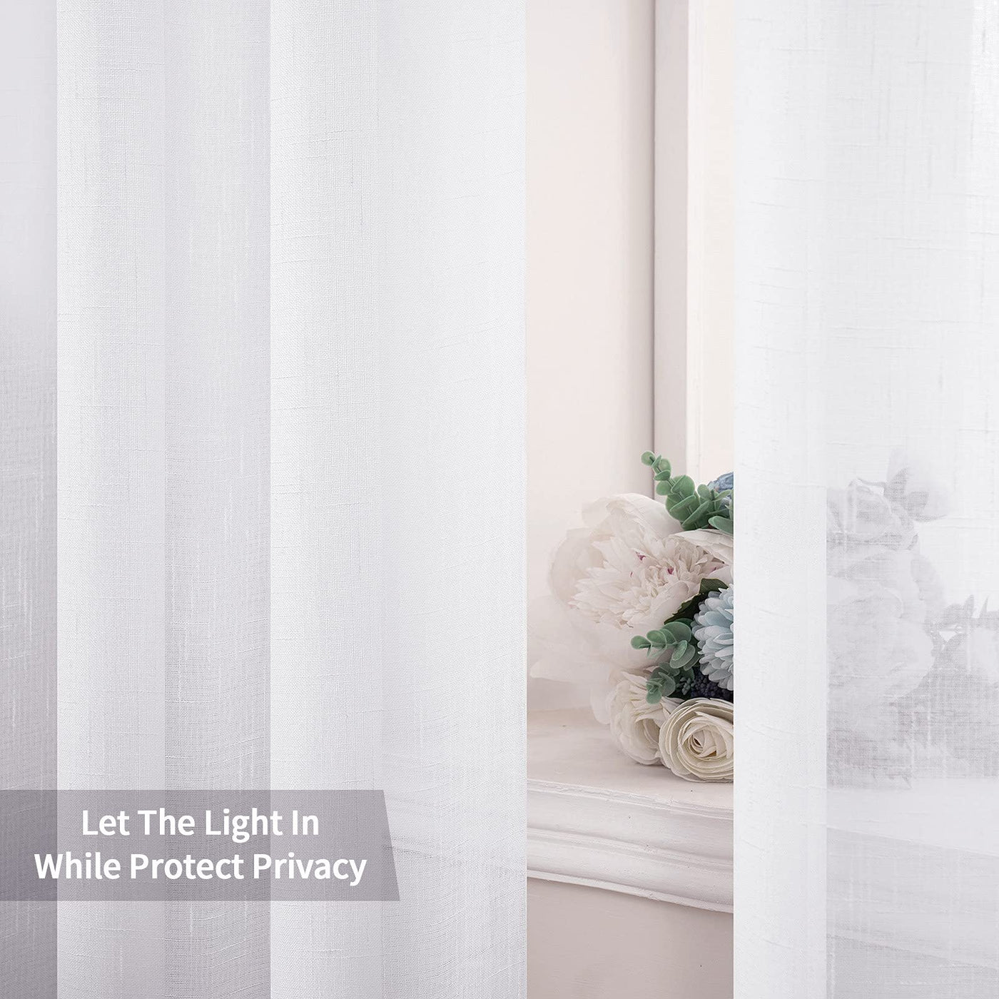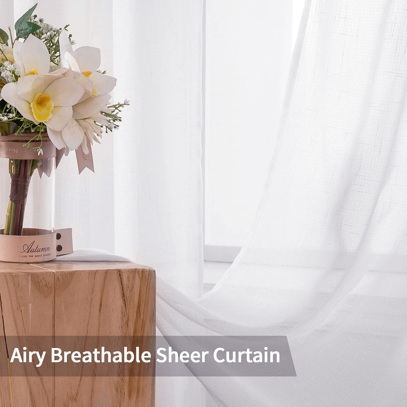 Miulee 2 Panels Natural Linen Sheer Window Curtains Elegant Solid White Drapes Grommet Top Window Voile Panels Linen Textured Pa