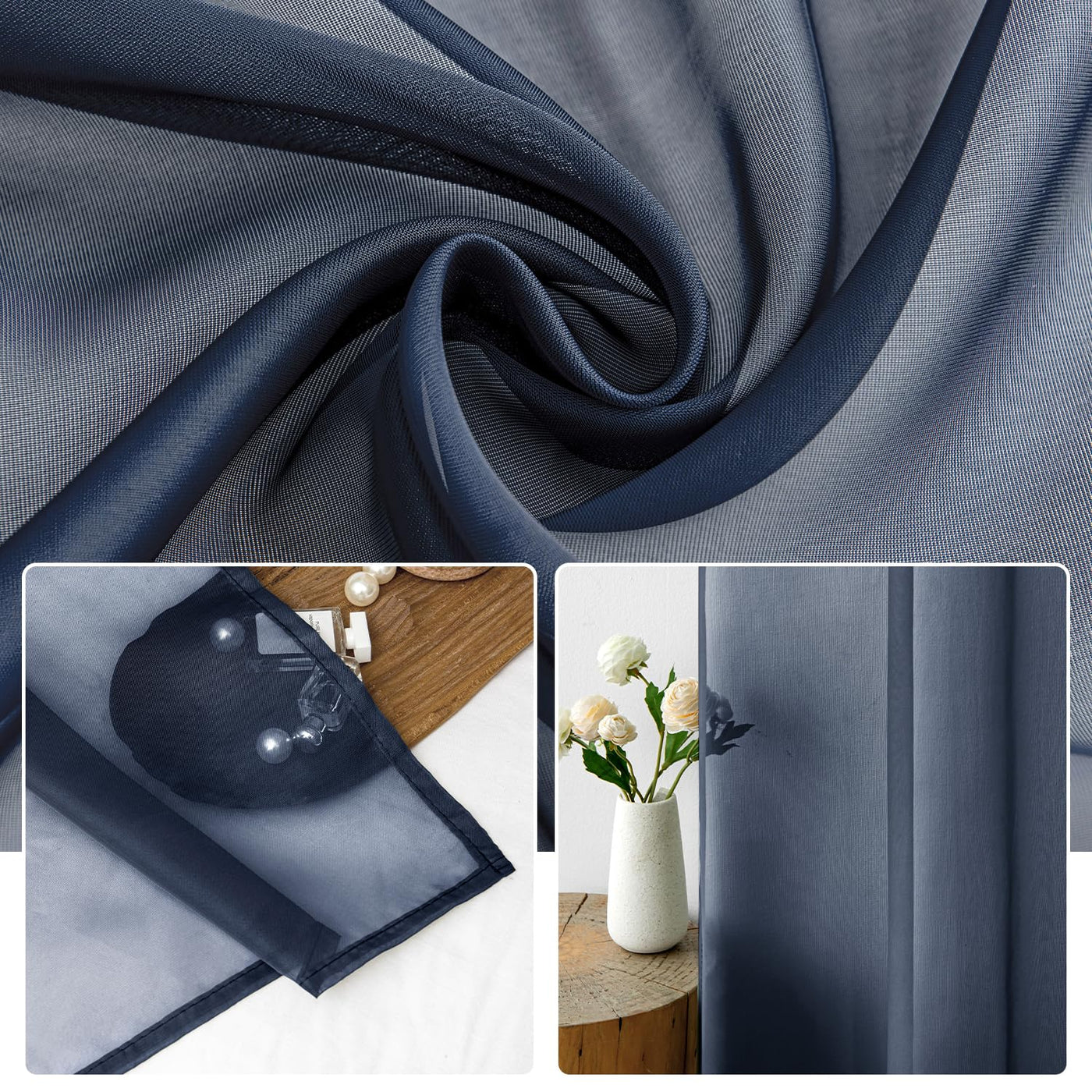 Miulee 2 Panels Navy Blue Sheer Curtains 84 Inches Long Window Curtains Rod Pocket Elegant Window Voile Panels/Drapes/Treatment For Bedroom Living Room (54X84 Inches)