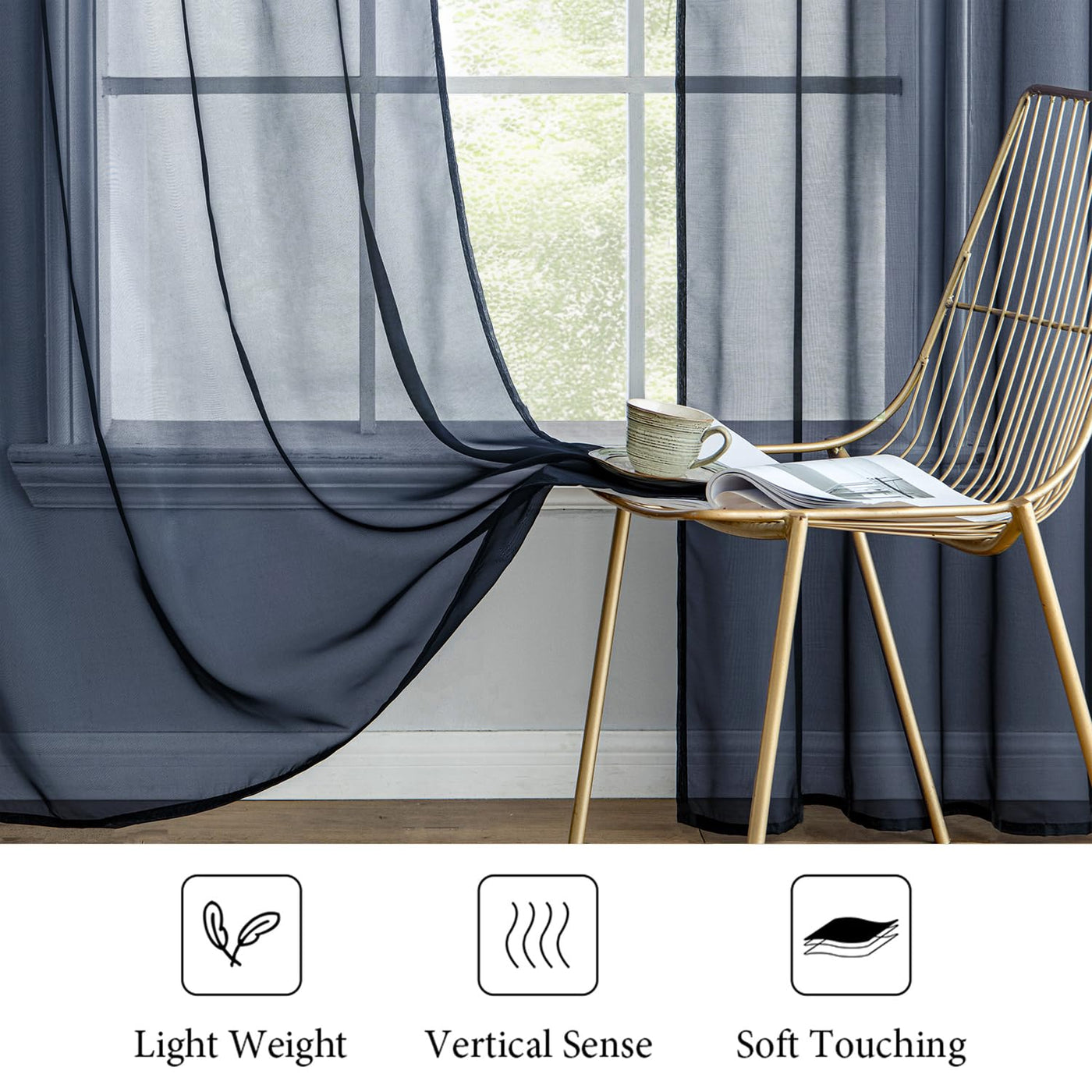 Miulee 2 Panels Navy Blue Sheer Window Curtains Elegant Window Voile Panels/Drapes/Treatment For Bedroom Living Room (54X45 Inches)