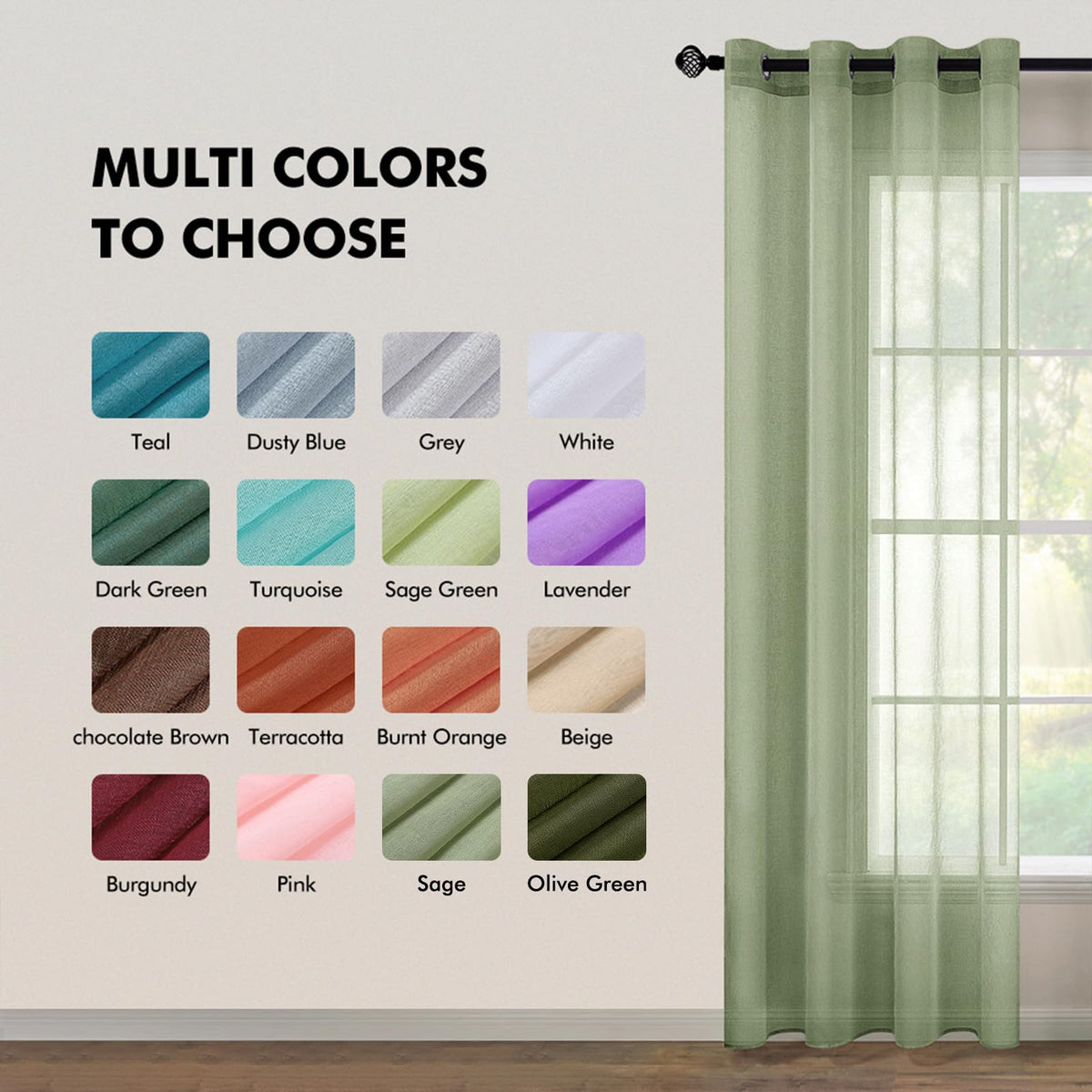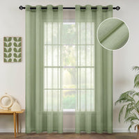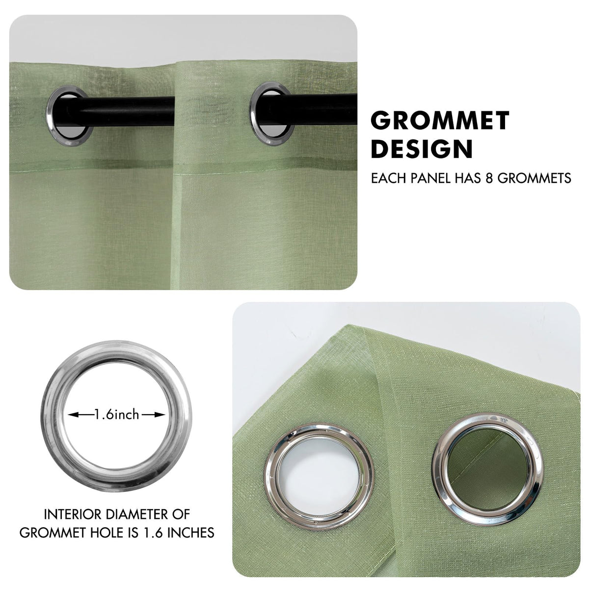 Miulee 2 Panels Sage Green Semi Sheer Window Curtains Elegant Grommet Top Window Voile Panels/Drapes/Treatment Linen Textured Light Green Panels For Bedroom Living Room (54X96 Inches)