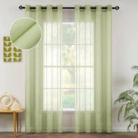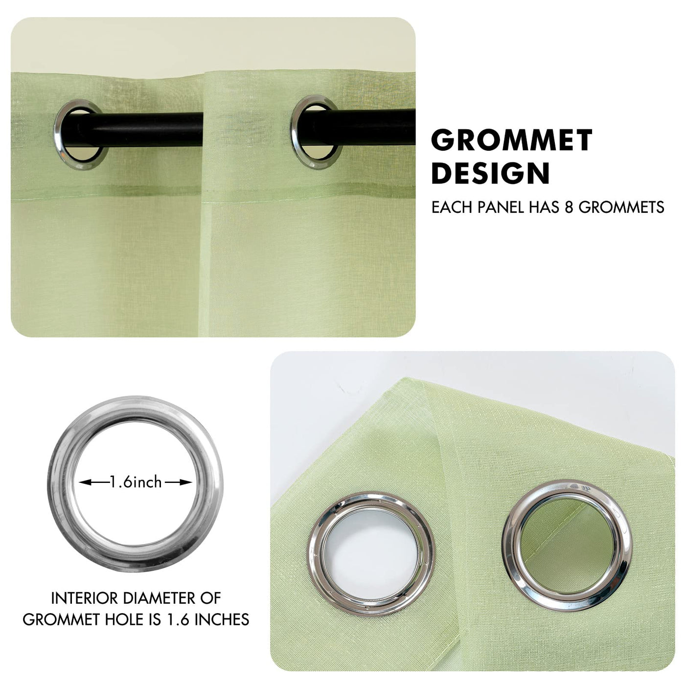 Miulee 2 Panels Sage Green Semi Sheer Window Curtains Elegant Grommet Top Window Voile Panels/Drapes/Treatment Linen Textured Panels Spring Decor For Bedroom Living Room (54X108 Inches)
