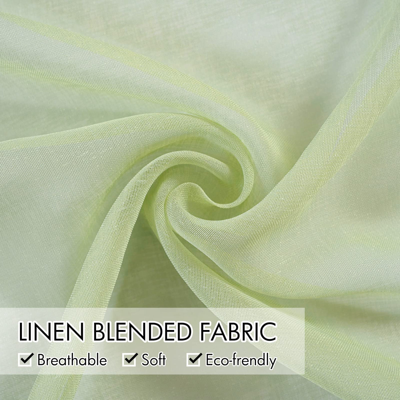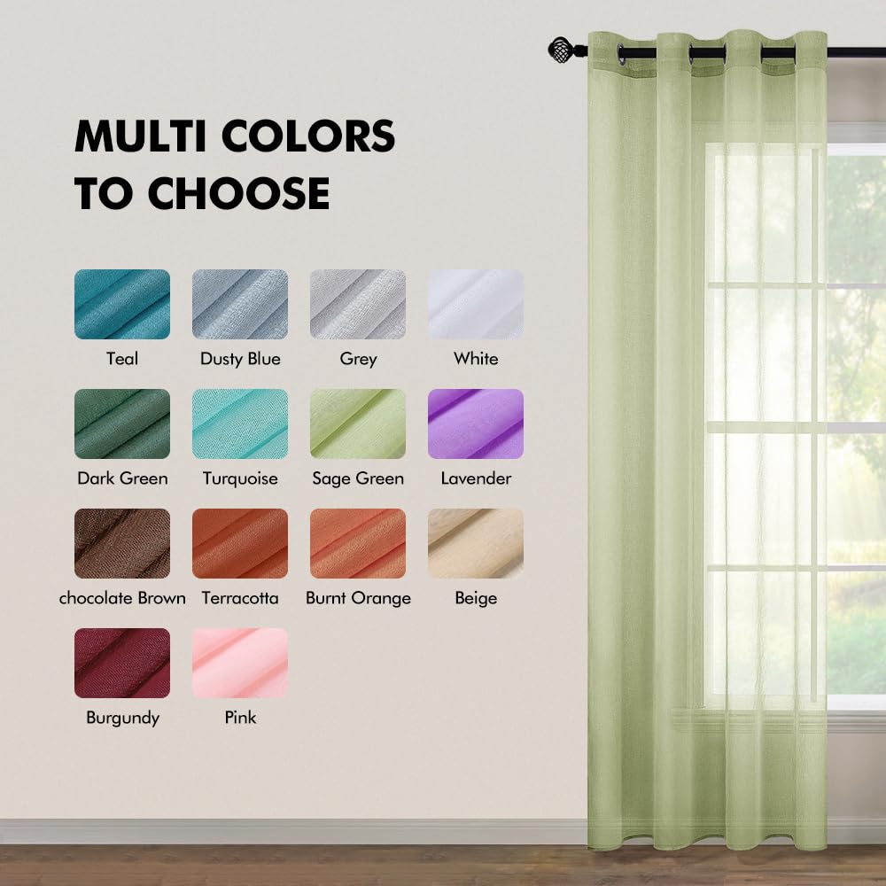 PACKAGE - Sold as 2 solid sheer curtain panels. Each panel measures 54 inch wide x 108 inch length. Total width is 108 inch width. The Inner diameter of grommet is 1.6 inches (4cm). 8 silver metal rings on top to suit with standard or decorative curtain rod. LINEN LOOK MATERIAL - These sheer curtains adopt high-quality faux linen textured fabric, which is soft, lightweight and durable. It looks more special and elegant in an aesthetic feeling, perfect for modern and casual style. SEMI-TRANSPARENT - With using the linen textured material, sheer drapes help to enhance privacy while still letting sunlight coming through. Do stop the light glare and give you light & airy feel. GOOD DECORATION - Curtains suitable for most of windows and shutters, it also can be hung separately or paired with other curtains. Ready made to match your blackout curtains, velvet curtains, curtain valances, blinds or any window treatments. Also can be used a divider between our bedroom and sitting room. EASY CARE - Machine washable in cold water, gentle cycle, tumble dry. Cool iron if needed.The wrinkles will press out easy with a light setting iron if needed. Do Not Bleach.