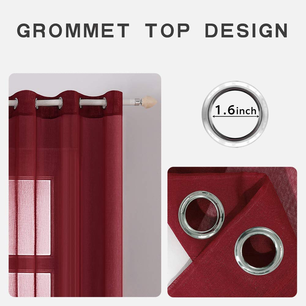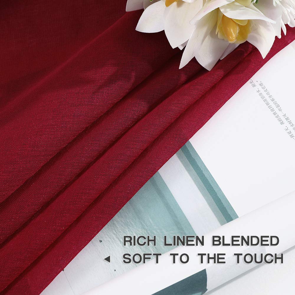 PACKAGE - Sold as 2 solid sheer curtain panels. Each panel measures 54 inch wide x 72 inch length. Total width is 108 inch width. The Inner diameter of grommet is 1.6 inches (4cm). 8 silver metal rings on top to suit with standard or decorative curtain rod. LINEN LOOK MATERIAL - These sheer curtains adopt high-quality faux linen textured fabric, which is soft, lightweight and durable. It looks more special and elegant in an aesthetic feeling, perfect for modern and casual style. SEMI-TRANSPARENT - With using the linen textured material, sheer drapes help to enhance privacy while still letting sunlight coming through. Do stop the light glare and give you light & airy feel. GOOD DECORATION - Curtains suitable for most of windows and shutters, it also can be hung separately or paired with other curtains. Ready made to match your blackout curtains, velvet curtains, curtain valances, blinds or any window treatments. Also can be used a divider between our bedroom and sitting room. EASY CARE - Machine washable in cold water, gentle cycle, tumble dry. Cool iron if needed.The wrinkles will press out easy with a light setting iron if needed. Do Not Bleach.