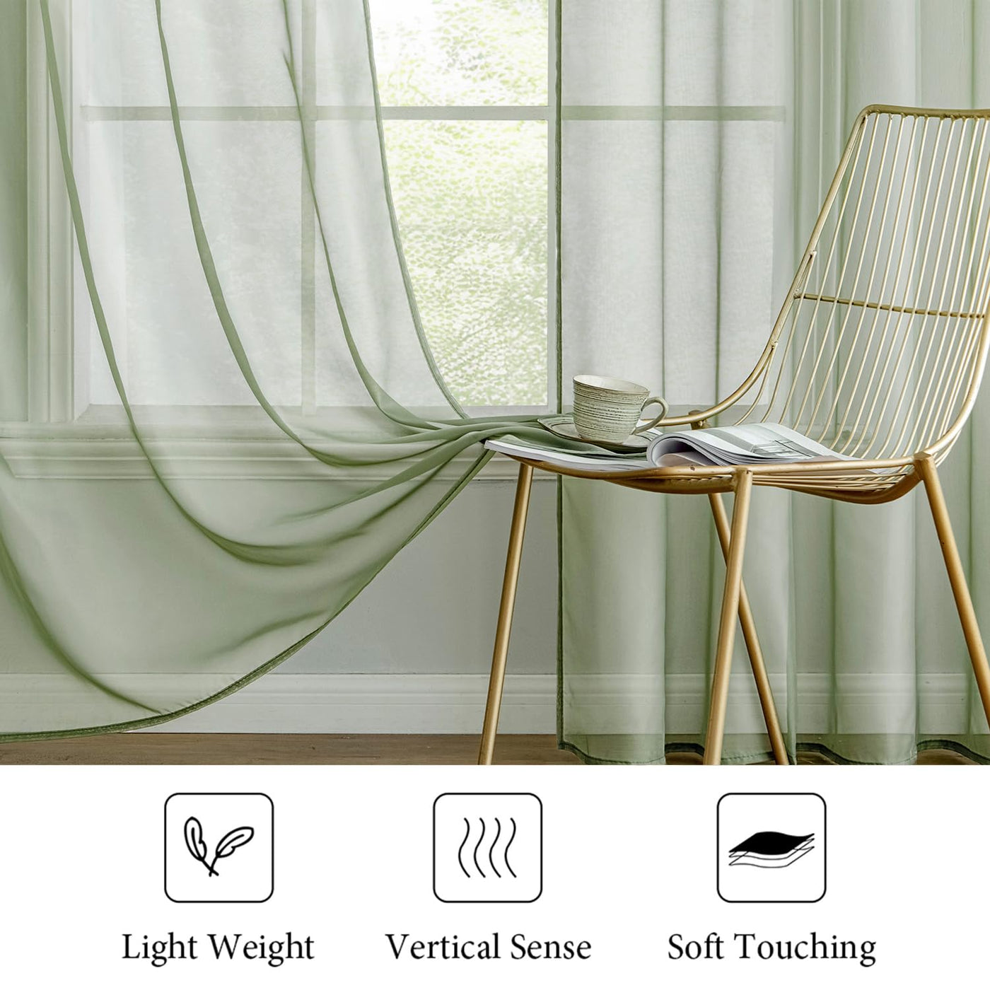 Miulee 2 Panels Sage Green Sheer Curtains 90 Inches Long Window Curtains Rod Pocket Elegant Window Voile Panels/Drapes/Treatment For Bedroom Living Room (54X90 Inches)