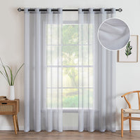 Miulee 2 Panels Silver Grey Semi Sheer Window Curtains Elegant Grommet Top Voile Window Treatments Linen Textured Drapes For Bedroom Living Room Dining Room (54X96 Inches)