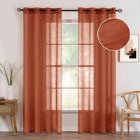 Miulee 2 Panels Terracotta Semi Sheer Window Curtains Elegant Grommet Top Window Voile Drapes/Treatment Linen Textured Panels For Bedroom Living Room Rust Boho Retro Fall Decor (54X108 Inches)