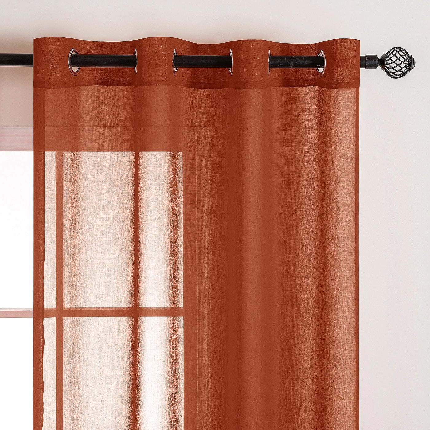 Miulee 2 Panels Terracotta Semi Sheer Window Curtains Elegant Grommet Top Window Voile Drapes/Treatment Linen Textured Panels For Bedroom Living Room Rust Boho Retro Fall Decor (54X96 Inches)