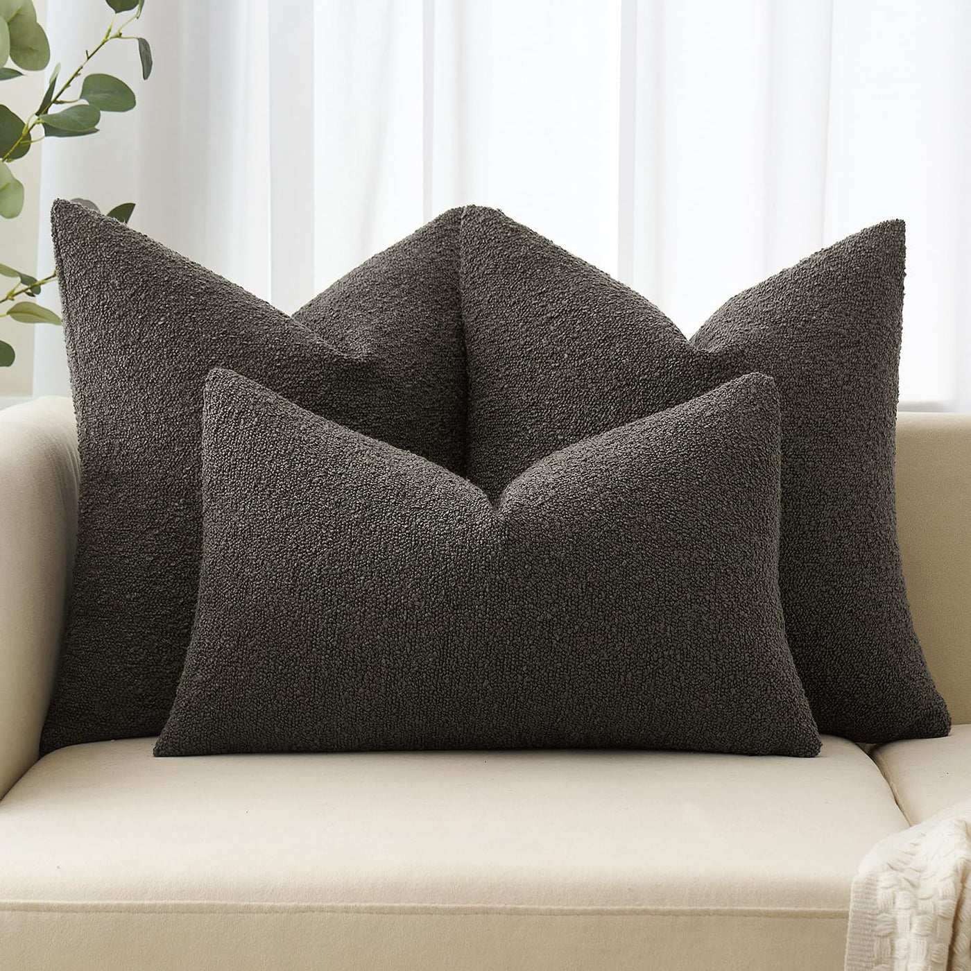 Miulee 20X20 Inch Decorative Pillow Covers For Couch Bed Set Of 2 Textured Boucle Neutral Throw Pillows Dark Coffee Accent Solid Cushion Pillowcase Cozy Soft Chair Sofa Livingroom Home Decor