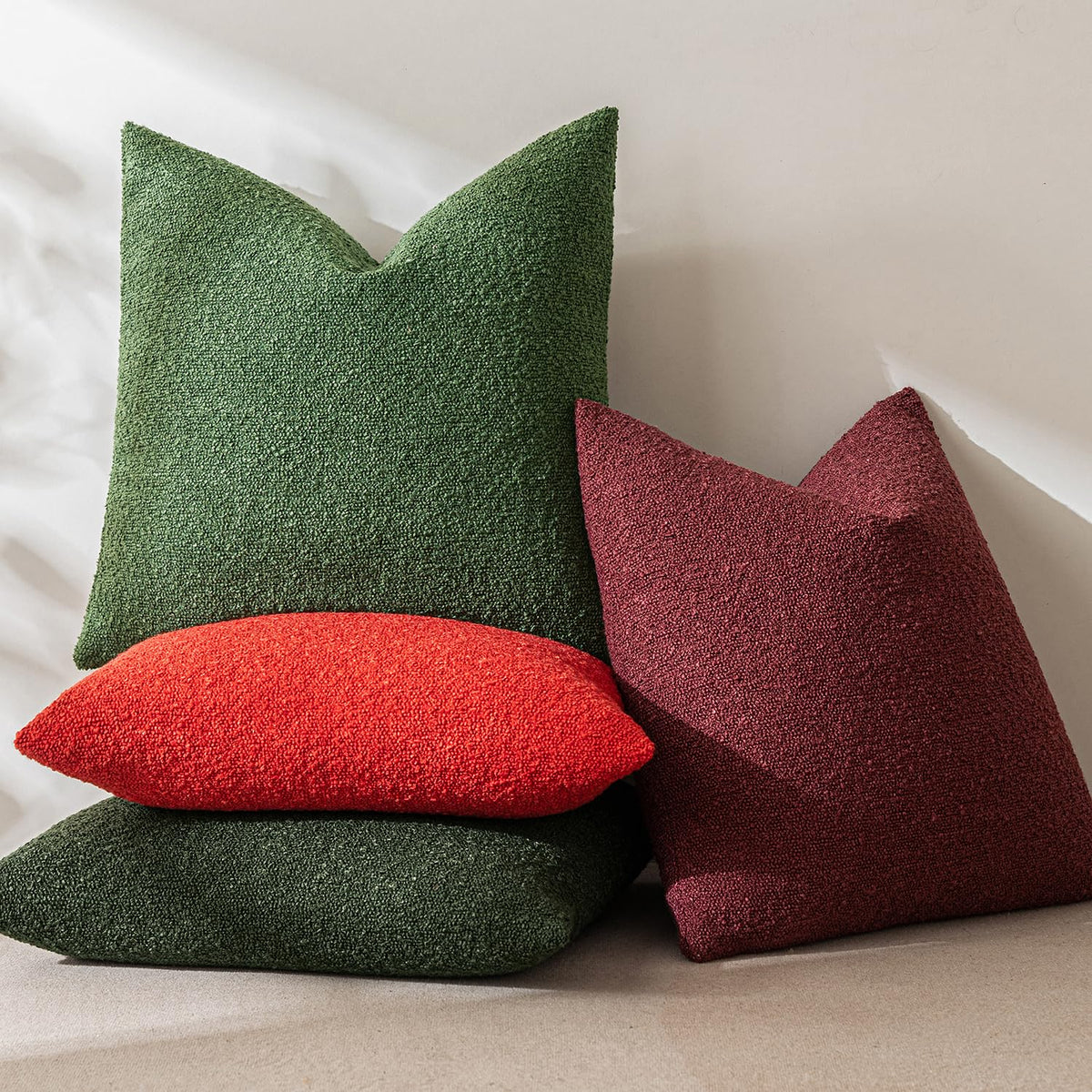 Miulee 22X22 Inch Decorative Pillow Covers For Couch Bed Set Of 2 Textured Boucle Neutral Throw Pillows Red Accent Solid Euro Cushion Pillowcase Cozy Soft Chair Sofa Livingroom Home Decor