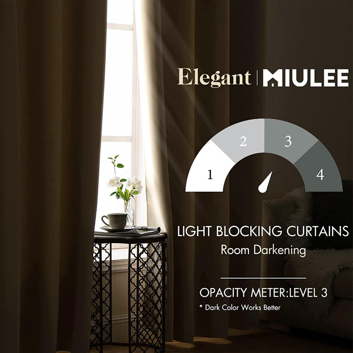 Decorating your room in a luxurious and elegant style with solid blackout curtains from MIULEE. MIULEE blackout thermal insulated curtains are designed to block out light in order to provide you a good sleeping environment. Blackout curtains could reduce noise and keep temperature inside to save energy, also could provide privacy 1.EASY TO HANG: Each package contains 2 pieces of high quality MIULEE blackout curtains. 6 nice mental grommets of 1.6-inch inner diameter are attached to each curtain, and they fit most curtain rods. 2.PREMIUM QUALITY: MIULEE solid blackout curtains are made of grade A polyester woven by advanced triple-weave sewing technology, making them quite durable and elegant. 3.LIGHT BLOCKING: The advanced textile technology brings effective blocking light function to the window drapes. Our blackout curtains can block 90%-99% sunlight (darker color would work better). You can choose the best option for yourself according to your needs. 4.SAVE MORE: MIULEE solid thermal insulated curtains can balance temperature by insulating against summer heat and winter chill which helps you save on energy bills and protect your wooden floor, carpet and upholstery from color fading caused by sun. 5.CARE INSTRUCTION: Machine washable in cold water. Tumble dry. Gentle cycle. Do not bleach. Quick ironing or steam clean at low temperature if needed.