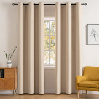 Decorating your room in a luxurious and elegant style with solid blackout curtains from MIULEE. MIULEE blackout thermal insulated curtains are designed to block out light in order to provide you a good sleeping environment. Blackout curtains could reduce noise and keep temperature inside to save energy, also could provide privacy 1.EASY TO HANG: Each package contains 2 pieces of high quality MIULEE blackout curtains. 6 nice mental grommets of 1.6-inch inner diameter are attached to each curtain, and they fit most curtain rods. 2.PREMIUM QUALITY: MIULEE solid blackout curtains are made of grade A polyester woven by advanced triple-weave sewing technology, making them quite durable and elegant. 3.LIGHT BLOCKING: The advanced textile technology brings effective blocking light function to the window drapes. Our blackout curtains can block 90%-99% sunlight (darker color would work better). You can choose the best option for yourself according to your needs. 4.SAVE MORE: MIULEE solid thermal insulated curtains can balance temperature by insulating against summer heat and winter chill which helps you save on energy bills and protect your wooden floor, carpet and upholstery from color fading caused by sun. 5.CARE INSTRUCTION: Machine washable in cold water. Tumble dry. Gentle cycle. Do not bleach. Quick ironing or steam clean at low temperature if needed.