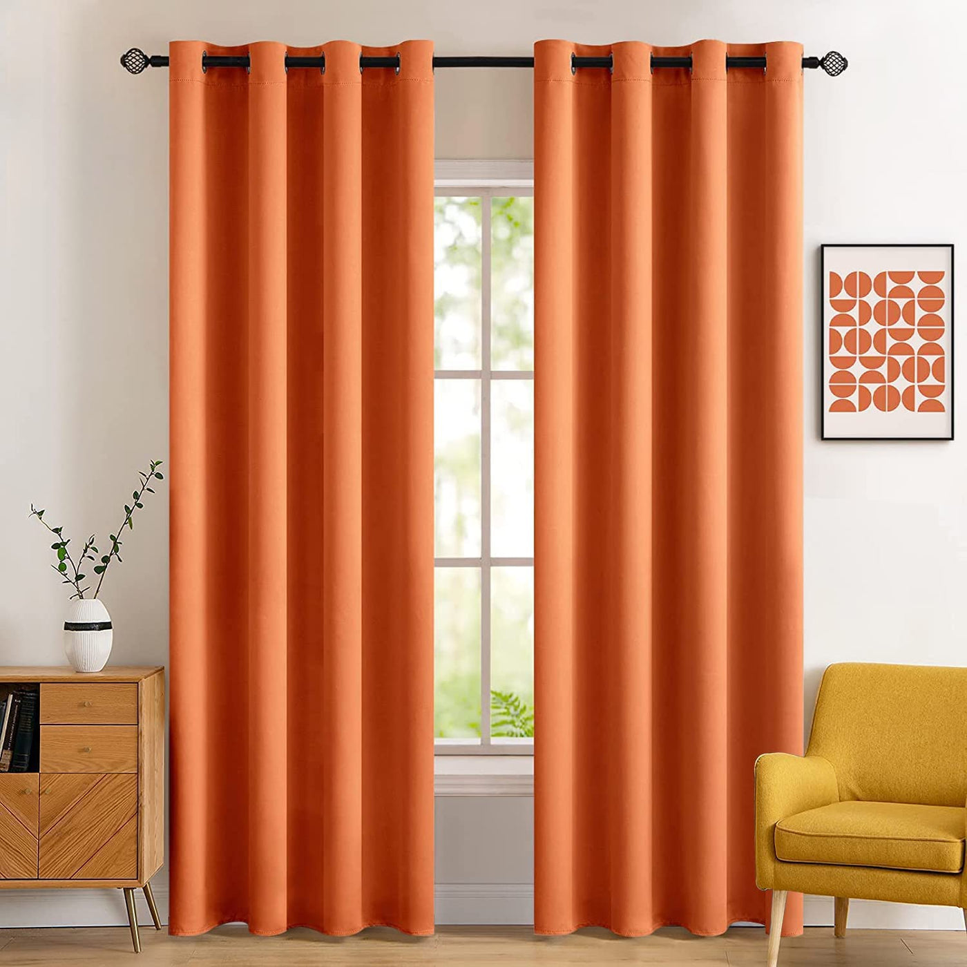 Miulee 96' Long Room Darkening Curtains Thermal Insulated Drapes Solid Window Treatment Set Grommet Top Light Blocking Blackout Curtain For Fall Living Room/Bedroom 2 Panels Orange