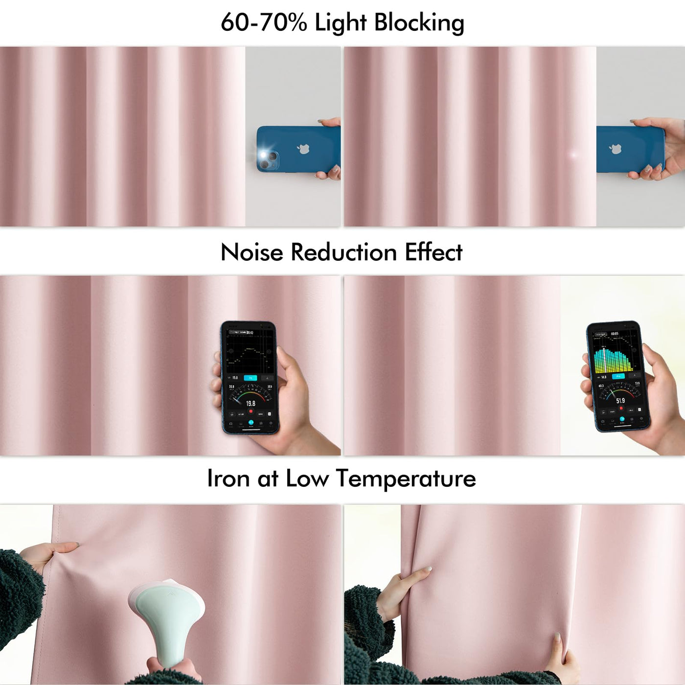 WELL MADE: Package includes 2 pcs high-quality blackout curtains. Each curtain panel measures 52 inches wide and 120 inches long. They can be easily matched with different decoration themes to give your room a modern and elegant style. MULTIPLE HANGING OPTIONS: Each panel features a 3-in-1 top style design: Rod Pocket, Back Tab and Pinch Pleat. The Back loop (2.3 'long) and rod pocket (3.1' long) fit most standard rods. Curtains also can be hung with clip rings or different type of hooks. We will GIVE AWAY 20 PIN HOOKS for each pair of curtains for your convenience (rings won't be included). PLEASE NOTE THAT FOR THE PLEAT HANGING METHOD, VISIBLE PLEATS CAN ONLY BE ACHIEVED BY USING 4 PRONG HOOKS, AND WE ONLY PROVIDE PIN HOOKS. LIGHT BLOCKING: Featuring triple weave stitching, these curtains can block 70%-80% of light and UV rays (dark colors work better). They can protect your furniture from fading and provide complete privacy and comfort for your nap or TV time. GOOD CHOICE: These durable and elegant curtain panels will bring a new and great look to your windows and rooms. Widely used in bedrooms, living rooms, patios, room dividers, functional and stylish. They still have top performance in terms of energy saving and noise reduction, while creating a ventilated and warm home scene. EASY CARE: Feel confident choosing MIULEE blackout curtains. Machine washable in cold water, gentle cycle, tumble dry, do not Bleach. Cool iron on face side if needed. Use steam iron on low heat from the back to remove creases/wrinkles.