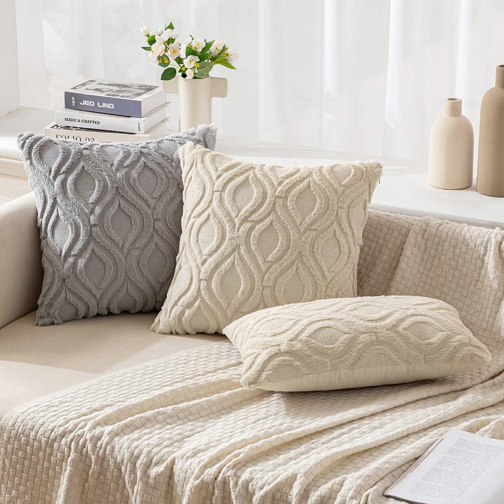 Miulee Beige Throw Pillow Covers 18X18 Inch, Soft Winter Plush Faux Wool Couch Pillow Covers Set Of 2 Decorative Farmhouse Boho Throw Pillows For Sofa Living Room Bed