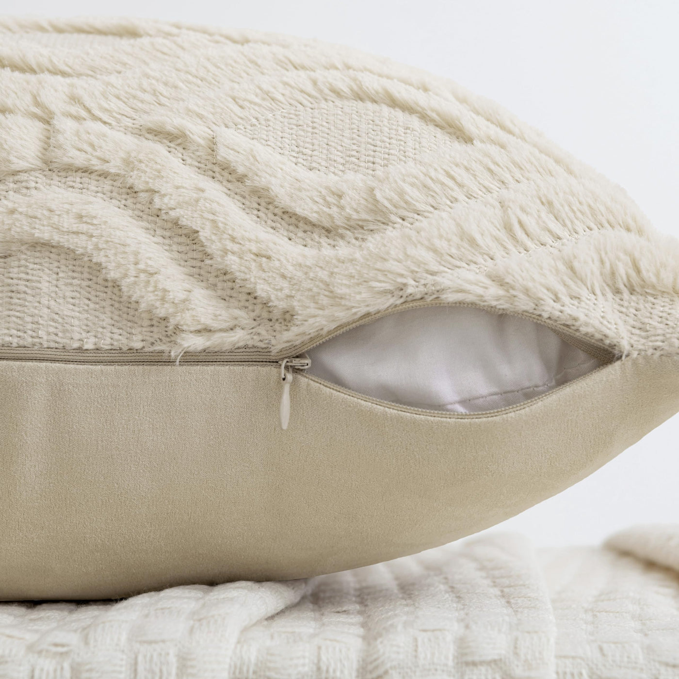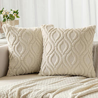 Miulee Beige Throw Pillow Covers 20X20 Inch, Soft Winter Plush Faux Wool Couch Pillow Covers Set Of 2 Decorative Farmhouse Boho Throw Pillows For Sofa Living Room Bed