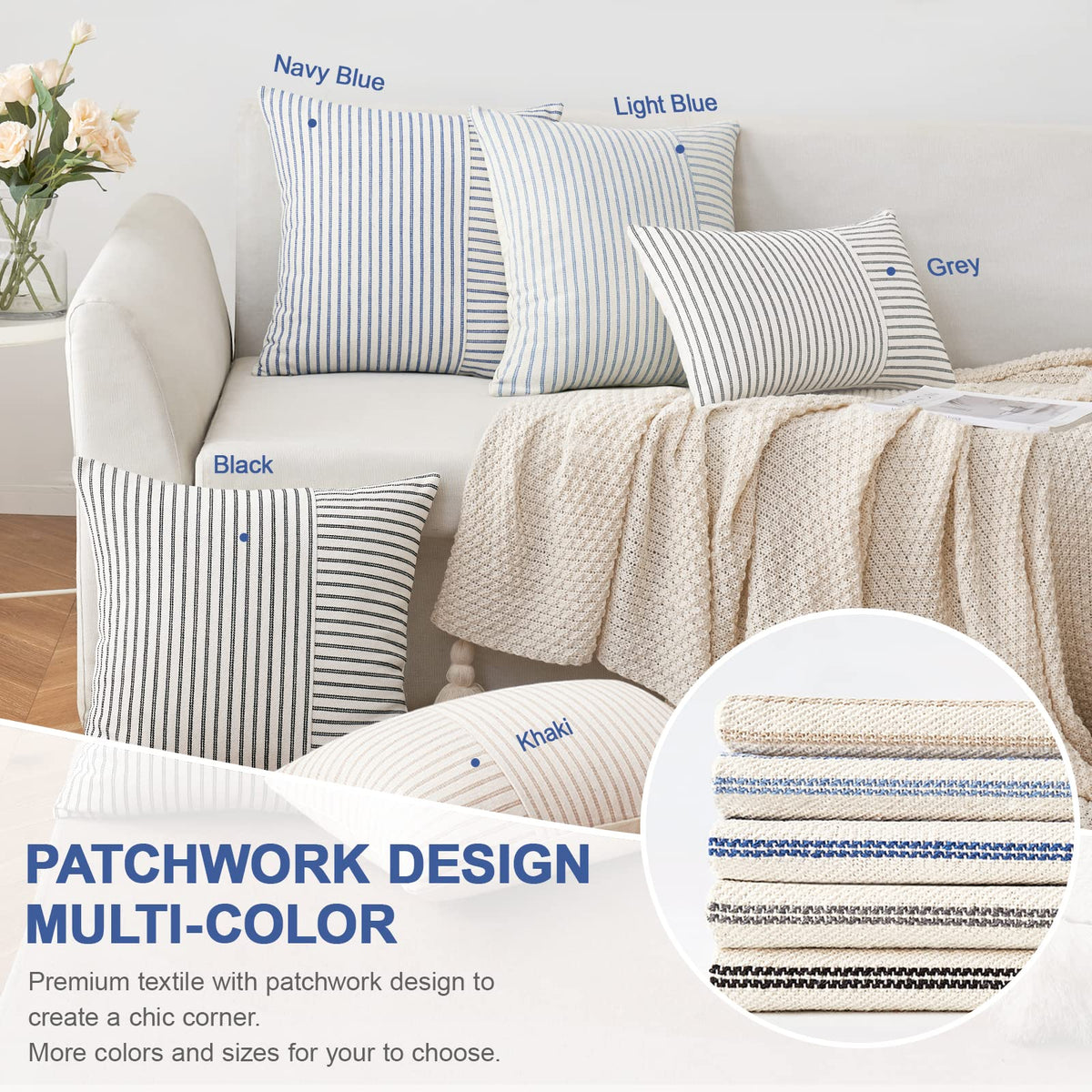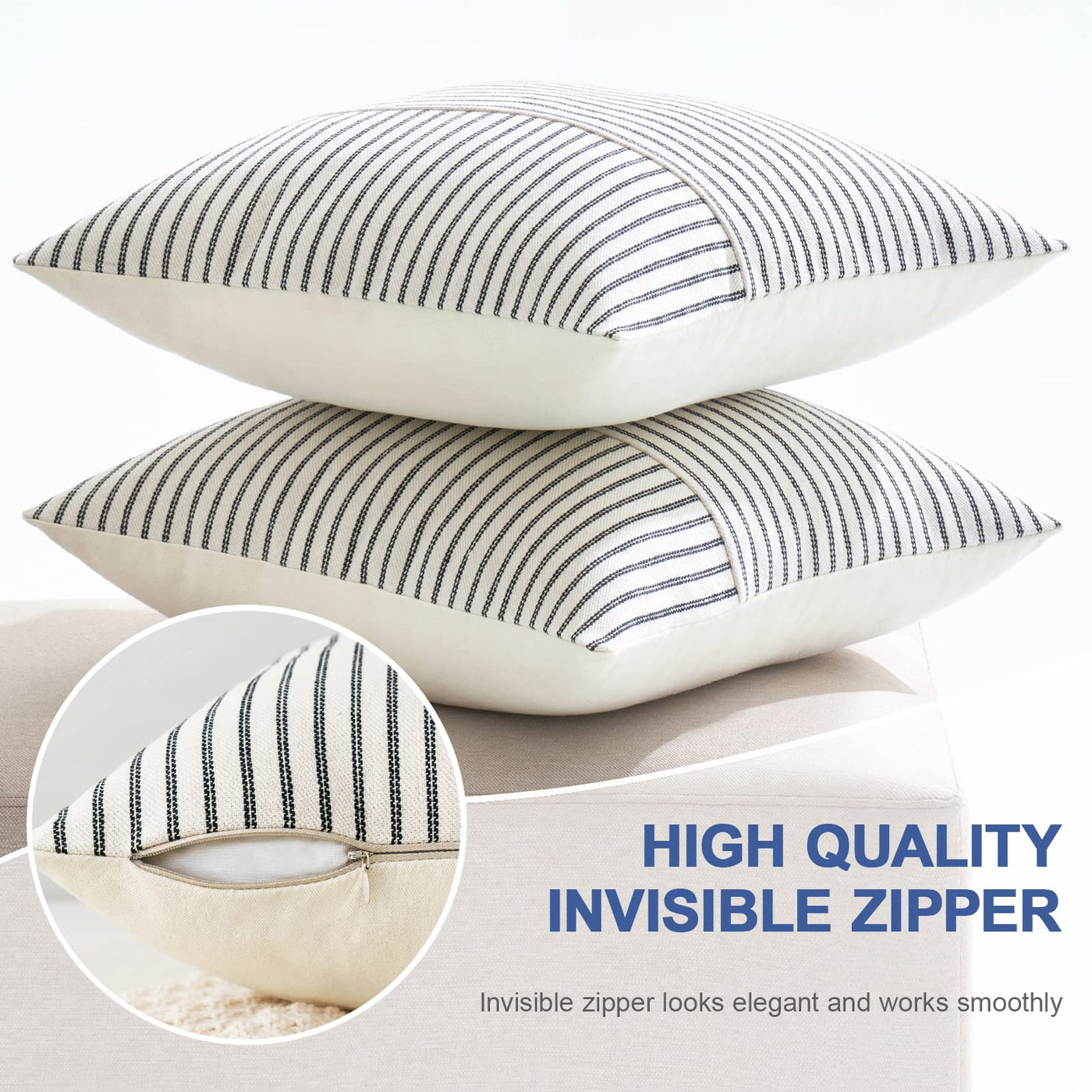 Miulee Black And Beige Patchwork Farmhouse Pillow Covers 16X16 Inch, Pack Of 2 Striped Linen Decorative Modern Accent Pillow Cases For Sofa Couch Bedroom