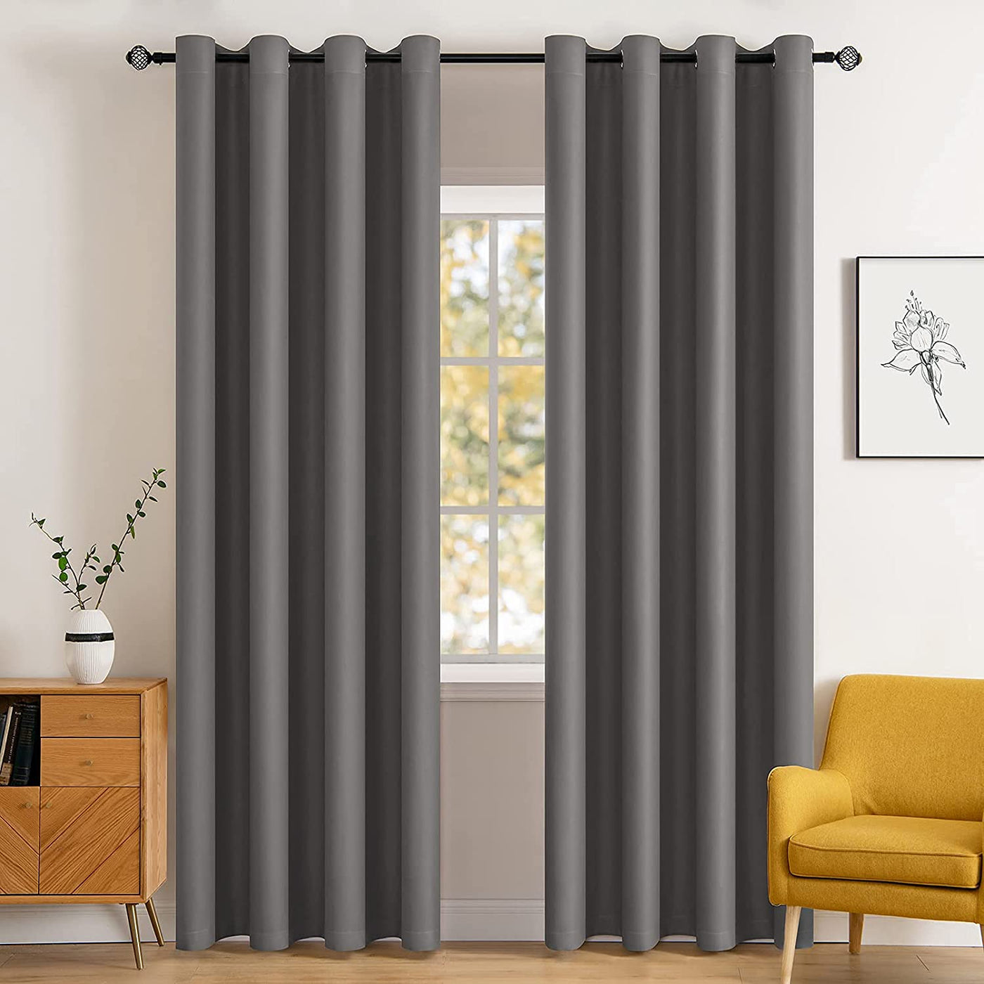 Miulee Blackout Curtains 84 Inch Long 2 Panels Burg Room Darkening Thermal Insulated Drapes Solid Window Treatment Set Grommet Top Light Blocking Curtain For Living Room/Bedroom Grey