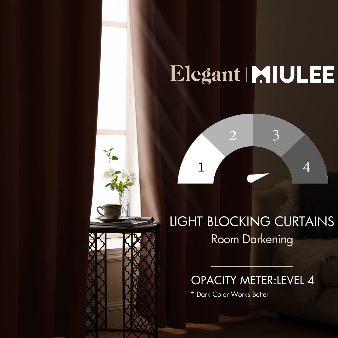 Decorating your room in a luxurious and elegant style with solid blackout curtains from MIULEE. MIULEE blackout thermal insulated curtains are designed to block out light in order to provide you a good sleeping environment. Blackout curtains could reduce noise and keep temperature inside to save energy, also could provide privacy 1.EASY TO HANG: Each package contains 2 pieces of high quality MIULEE blackout curtains. 6 nice mental grommets of 1.6-inch inner diameter are attached to each curtain, and they fit most curtain rods. 2.PREMIUM QUALITY: MIULEE solid blackout curtains are made of grade A polyester woven by advanced triple-weave sewing technology, making them quite durable and elegant. 3.LIGHT BLOCKING: The advanced textile technology brings effective blocking light function to the window drapes. Our blackout curtains can block 90%-99% sunlight (darker color would work better). You can choose the best option for yourself according to your needs. 4.SAVE MORE: MIULEE solid thermal insulated curtains can balance temperature by insulating against summer heat and winter chill which helps you save on energy bills and protect your wooden floor, carpet and upholstery from color fading caused by sun. 5.CARE INSTRUCTION: Machine washable in cold water. Tumble dry. Gentle cycle. Do not bleach. Quick ironing or steam clean at low temperature if needed.
