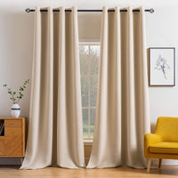 Miulee Blackout Curtains For Bedroom Living Room Thermal Insulated Room Darkening Grommet Top Solid Light Blocking Drapery Set Of 2 Window Panels 52 X 92 Inches Beige