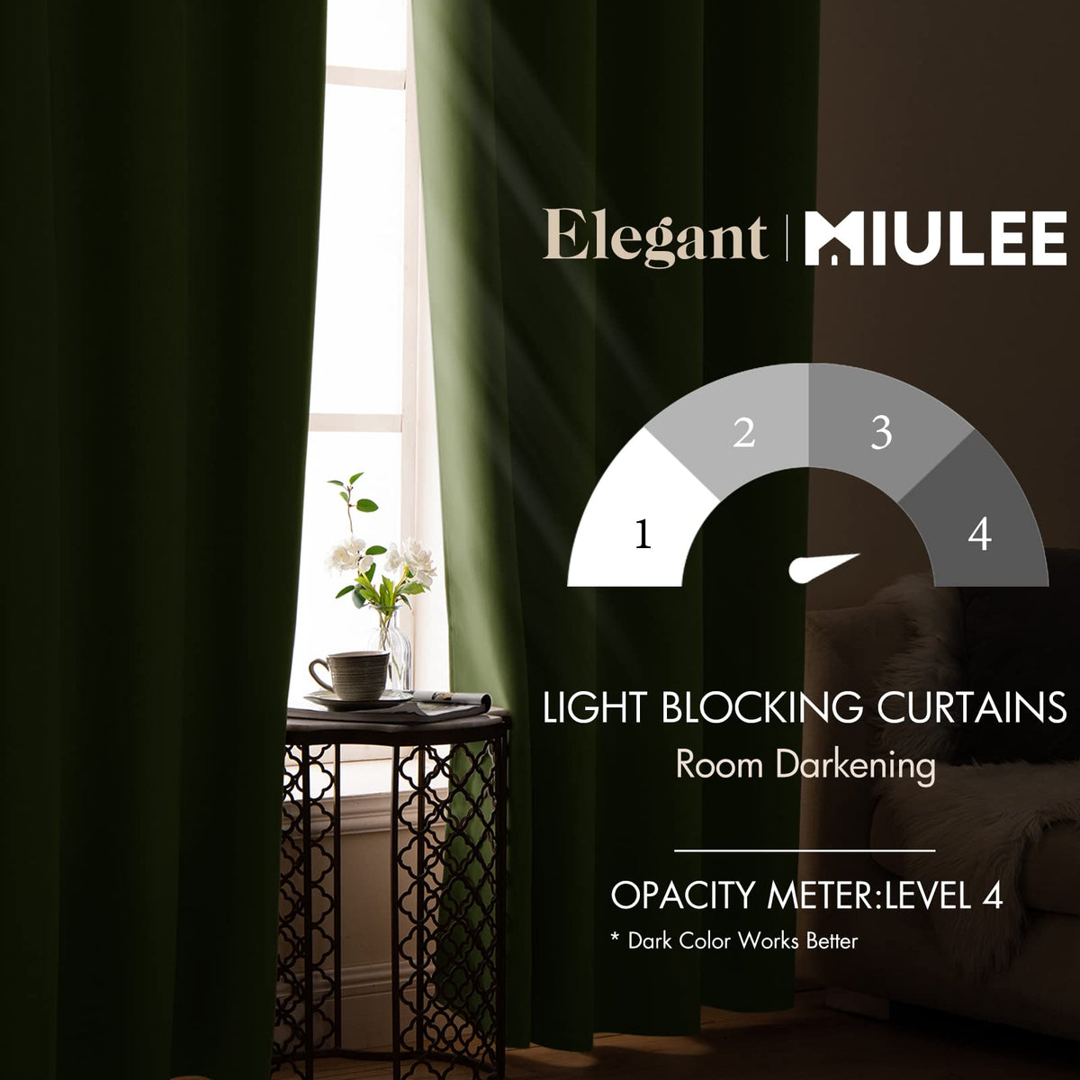 Miulee Blackout Curtains Room Darkening Thermal Insulated Drapes Solid Window Treatment Set Grommet Top Light Blocking Curtain For Living Room/Bedroom 2 Panels 42X63 Inch,Olive Green